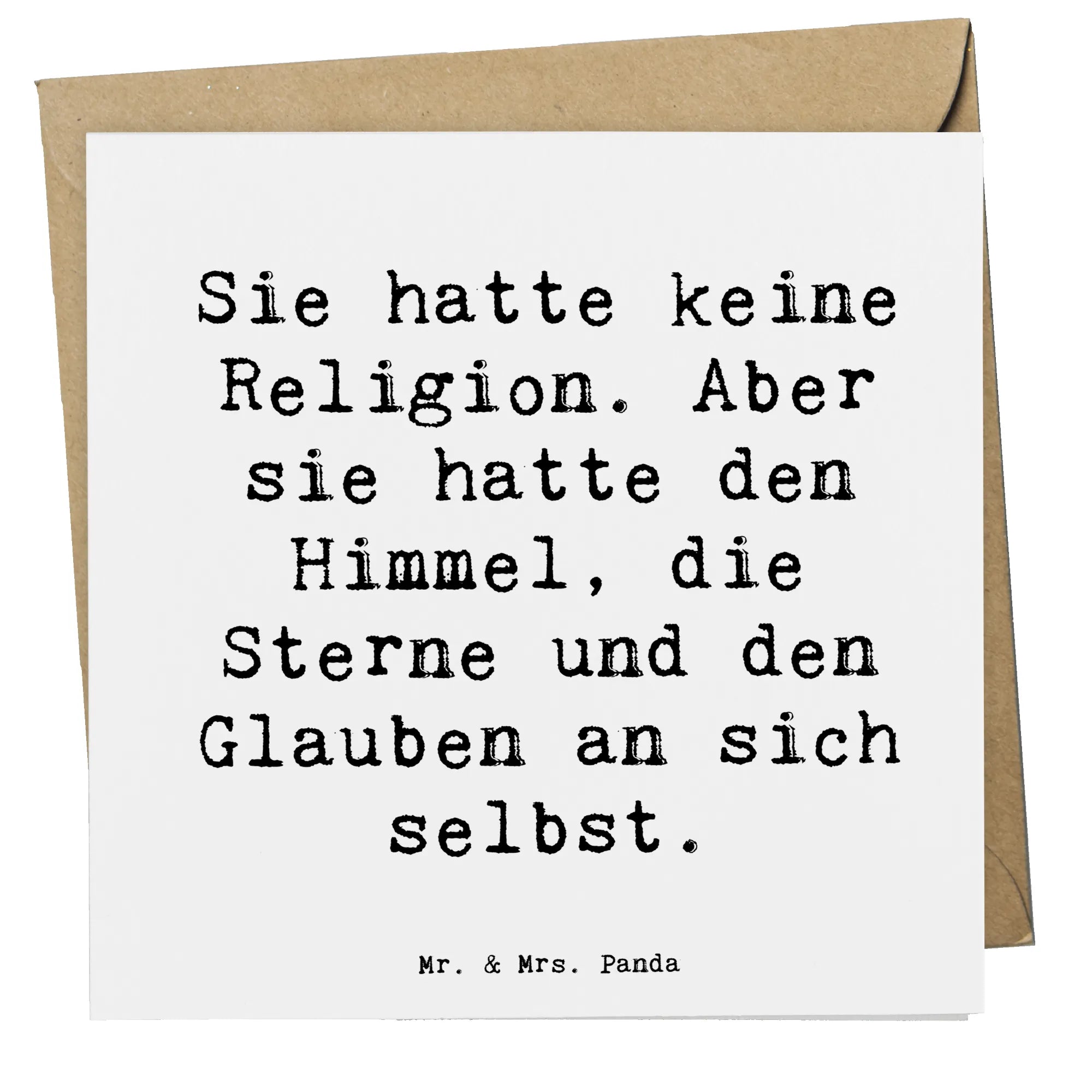 Die Karte hat die Maße 140 mm x 140 mm und besteht aus hochwertigem 300 Gramm Karton, der nicht nur toll aussieht, sondern sich auch hochwertig anfühlt. Die besondere Botschaft "Sie hatte keine Religion. Aber sie hatte den Himmel, die Sterne und den Glauben an sich selbst." inspiriert und motiviert! Egal ob als Geburtstagskarte, Hochzeitskarte, für besondere Anlässe oder einfach nur, um jemandem eine Freude zu bereiten – diese Karte ist die ideale Wahl.