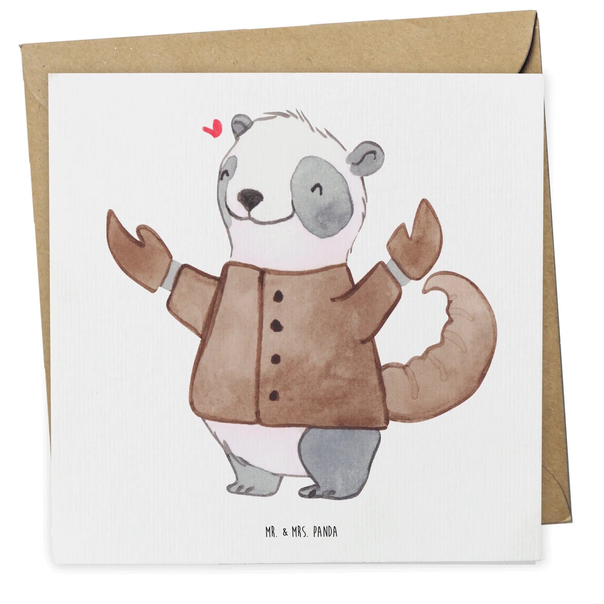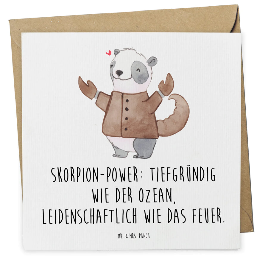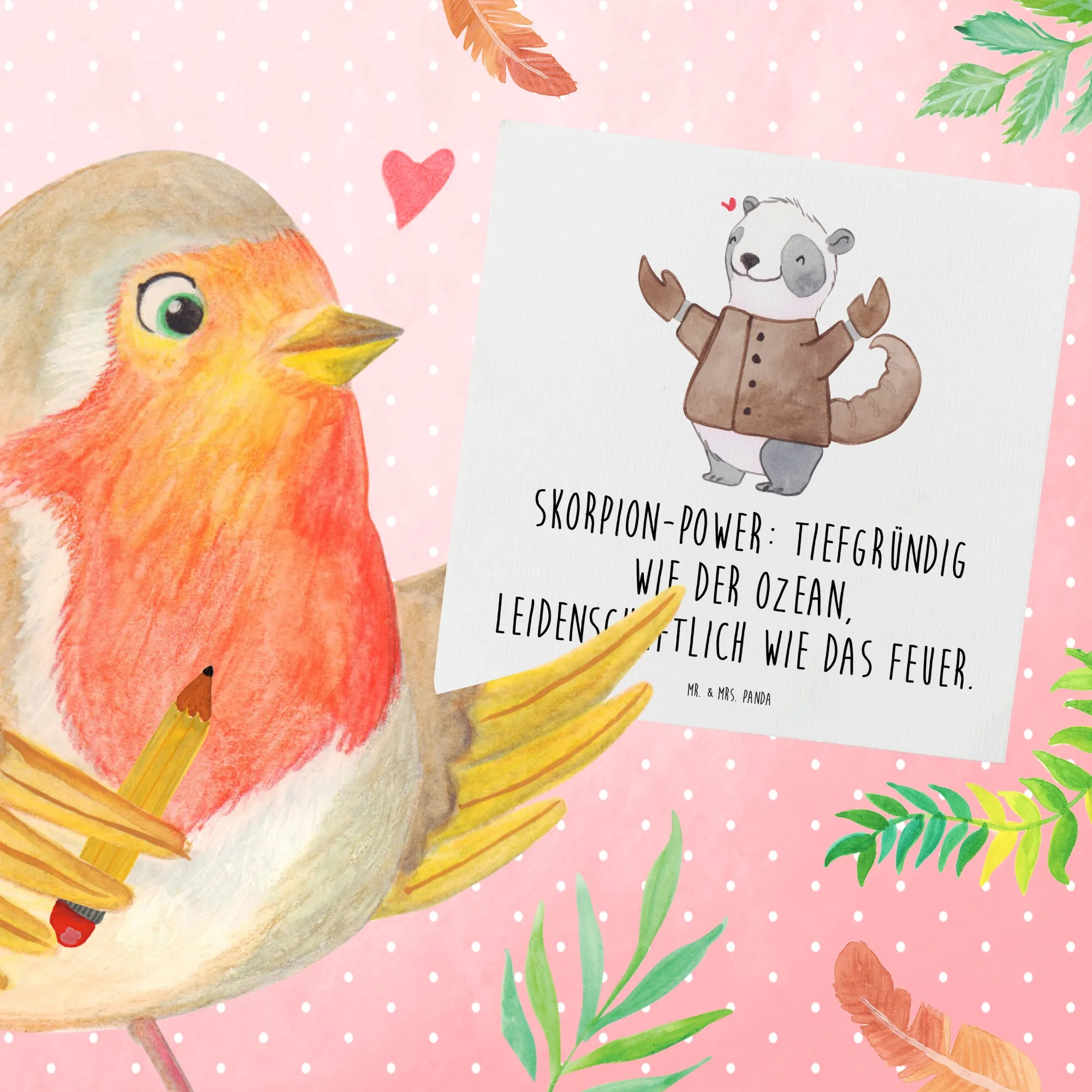 Die Deluxe Karte mit dem Motiv Skorpion Astrologie von Mr. & Mrs. Panda ist das perfekte Geschenk für alle, die unter dem geheimnisvollen Zeichen des Skorpions geboren wurden. Diese wunderschöne und besonders hochwertige quadratische Karte besticht durch ihr liebevoll handgezeichnetes Design, das einen niedlichen Panda im Skorpion-Kostüm zeigt. Der Panda strahlt stolz und bringt mit seinem freundlichen Lächeln sofort gute Laune.