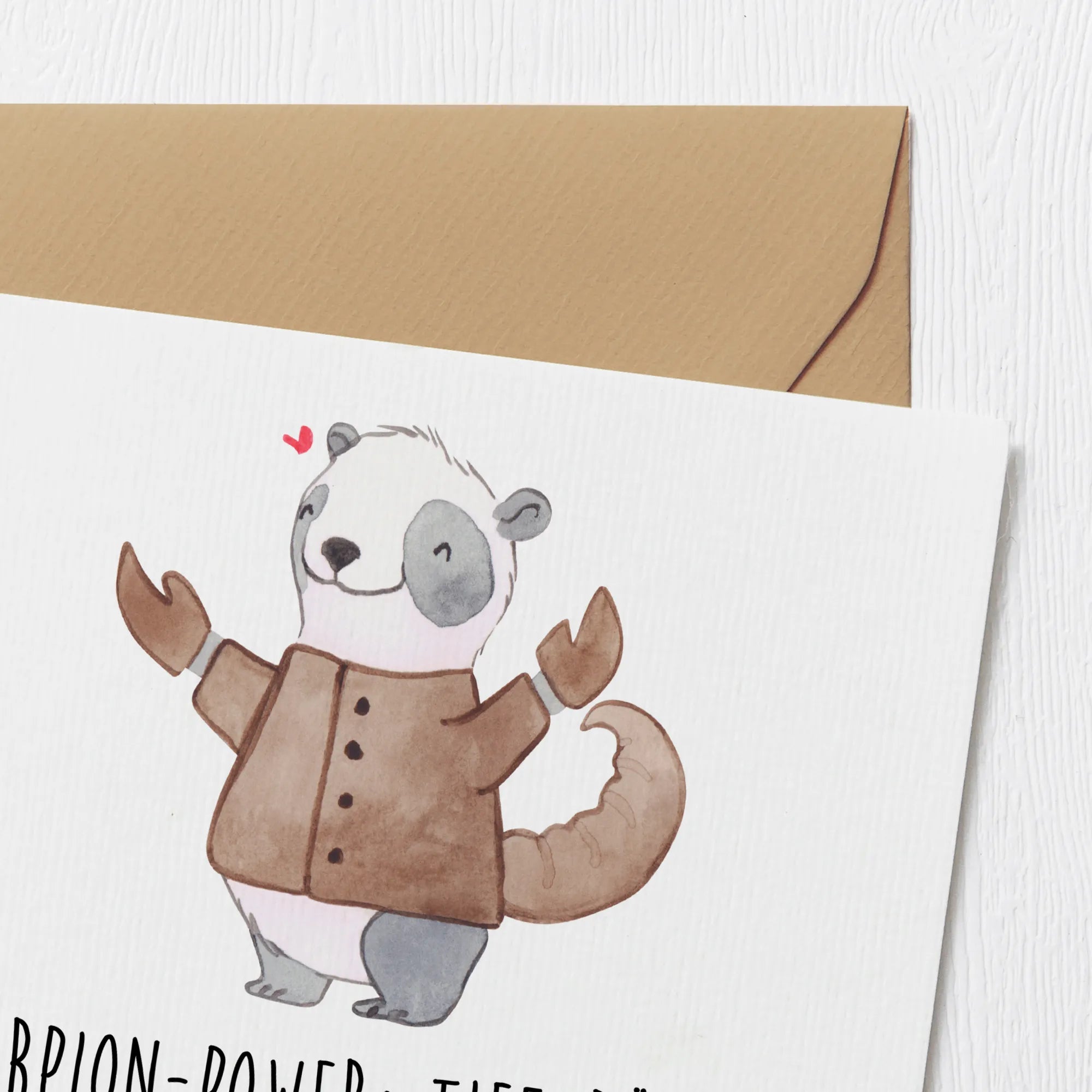 Die Deluxe Karte "Skorpion Astrologie" von Mr. & Mrs. Panda ist das perfekte Geschenk für alle, die unter dem leidenschaftlichen Sternzeichen Skorpion geboren sind. Mit ihrem liebevoll handgezeichneten Motiv eines niedlichen Pandas, der stolz in seinem Skorpion-Kostüm strahlt, spiegelt diese Karte die einzigartige Persönlichkeit und astrale Stärke der Skorpione wider.