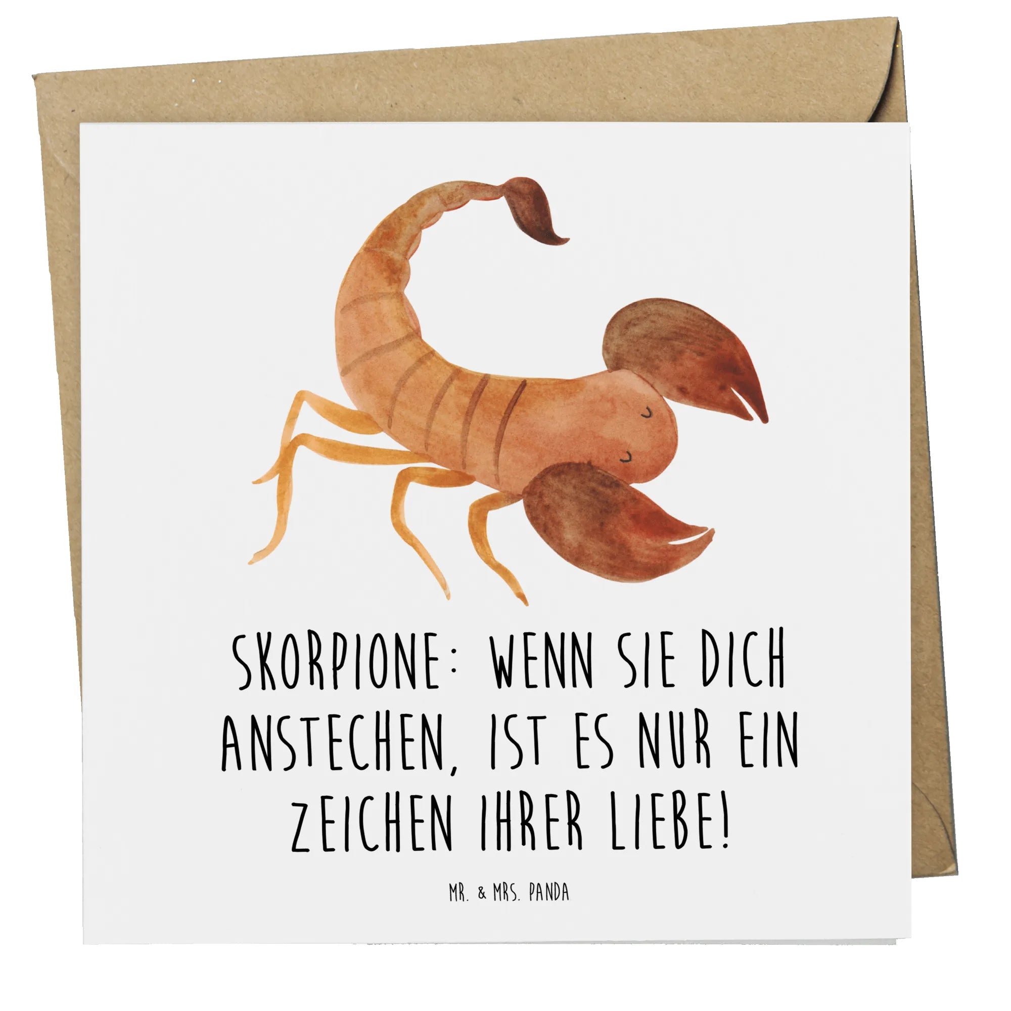 Entdecke die Deluxe Karte Skorpion von Mr. & Mrs. Panda, die perfekt für all die besonderen Anlässe im Leben ist! Diese wunderschöne, hochwertige quadratische Grußkarte ist nicht nur ein echter Hingucker, sondern enthält auch einen liebevollen Spruch: "Skorpione: Wenn sie dich anstechen, ist es nur ein Zeichen ihrer Liebe!". Die Karte hat die Maße von 140 mm x 140 mm und besteht aus hochwertigem 300 Gramm Karton, der für eine edle und einmalige Optik sorgt.