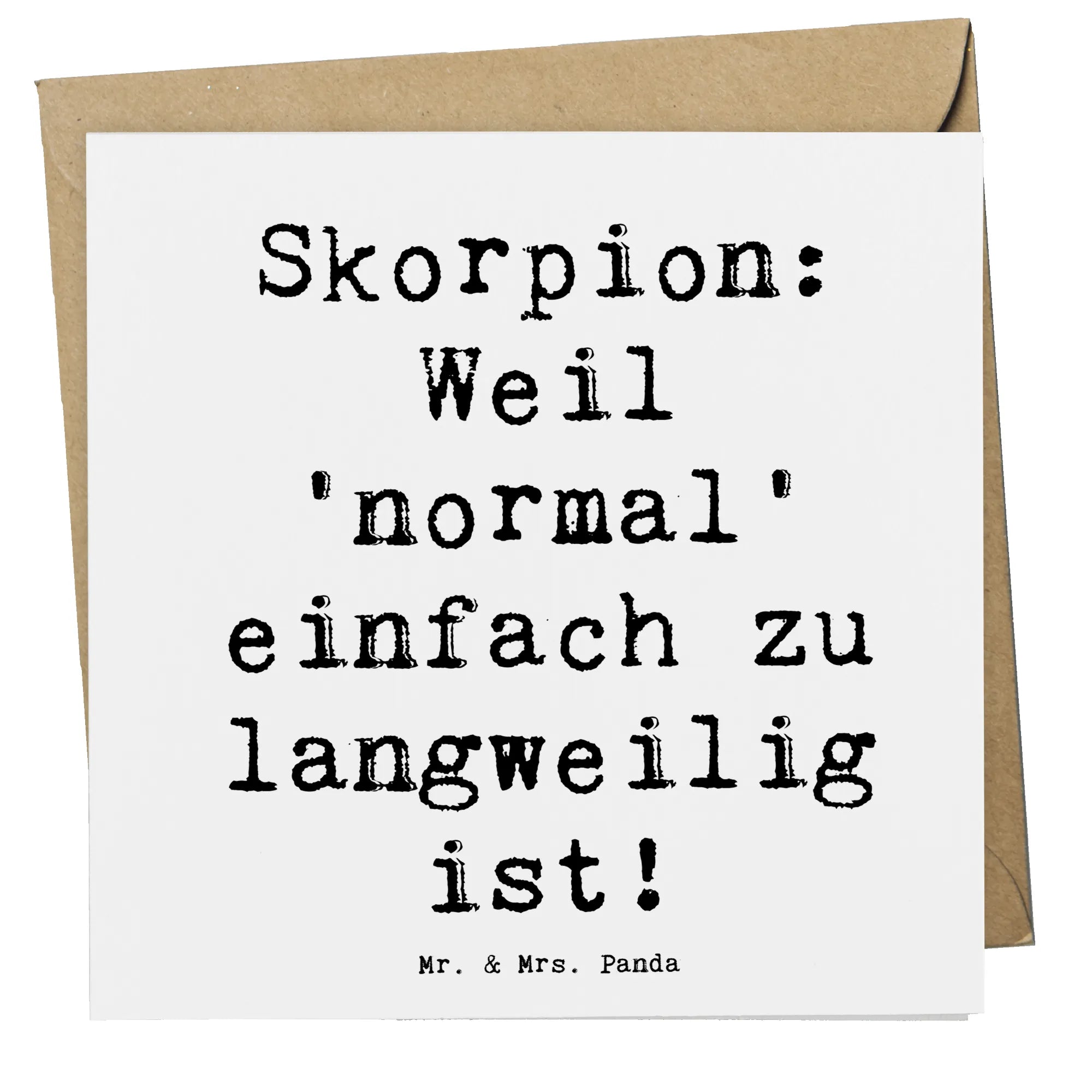 Mit dem charmanten Spruch 'Skorpion: Weil 'normal' einfach zu langweilig ist!' spricht die Karte die besonderen Eigenschaften und die unkonventionelle Natur des Skorpions an.