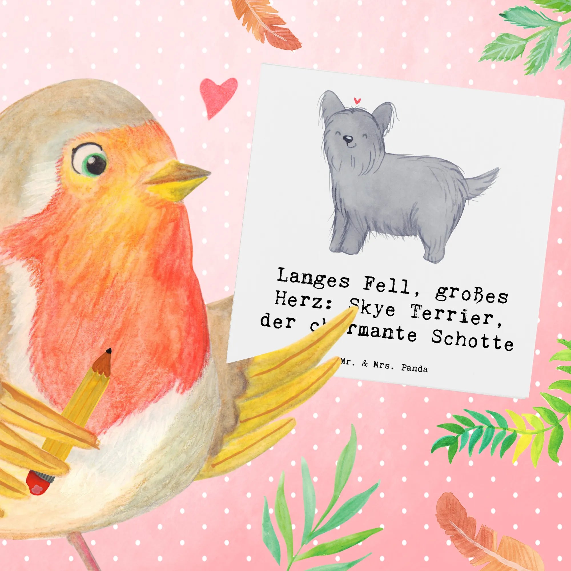 Die Deluxe Karte mit dem bezaubernden Motiv des Skye Terriers von Mr. & Mrs. Panda ist das perfekte Geschenk für Hundeliebhaber und jeden, der Freude verbreiten möchte! 🌟 Mit ihrem farbenfrohen Design und dem liebevollen Slogan "Langes Fell, großes Herz: Skye Terrier, der charmante Schotte" zieht diese Karte sofort alle Blicke auf sich.