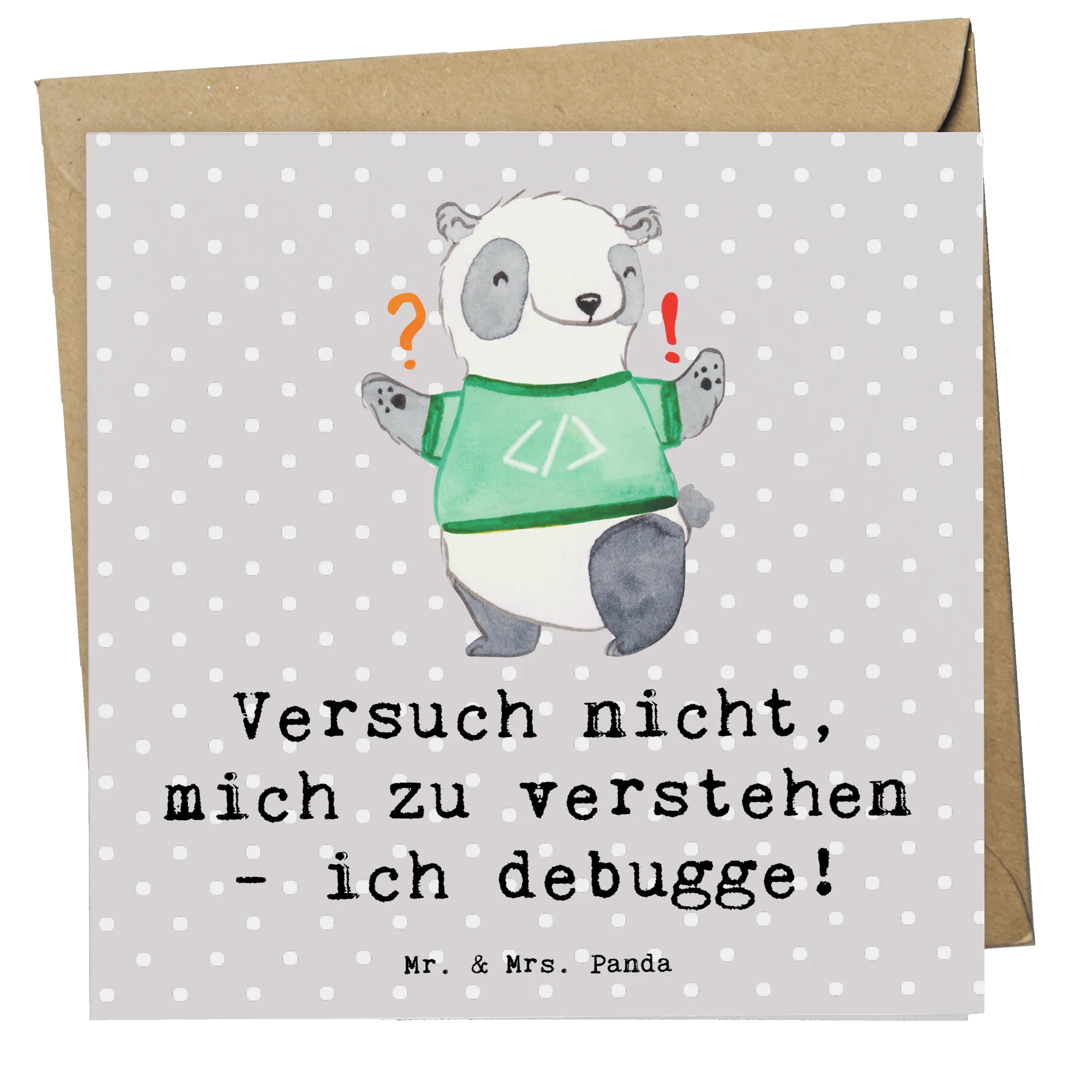 Entdecke die Deluxe Karte für Softwareentwickler von Mr. & Mrs. Panda - eine wunderschöne und besonders hochwertige quadratische Karte, die sich perfekt für alle Momente eignet, in denen du deine Glückwünsche oder Grüße versenden möchtest. Mit dem liebevollen Motiv und dem Spruch 'Versuch nicht, mich zu verstehen - ich debugge!' ist diese Karte ideal für IT-Entwickler, Programmierer und technologiebegeisterte Menschen. Ob zum Geburtstag, zur Hochzeit oder einfach als kleine Aufmerksamkeit für deinen Kollegen, diese Karte bringt direkt ein Lächeln ins Gesicht!