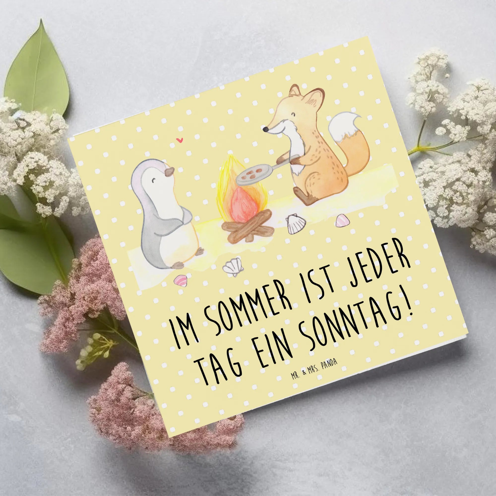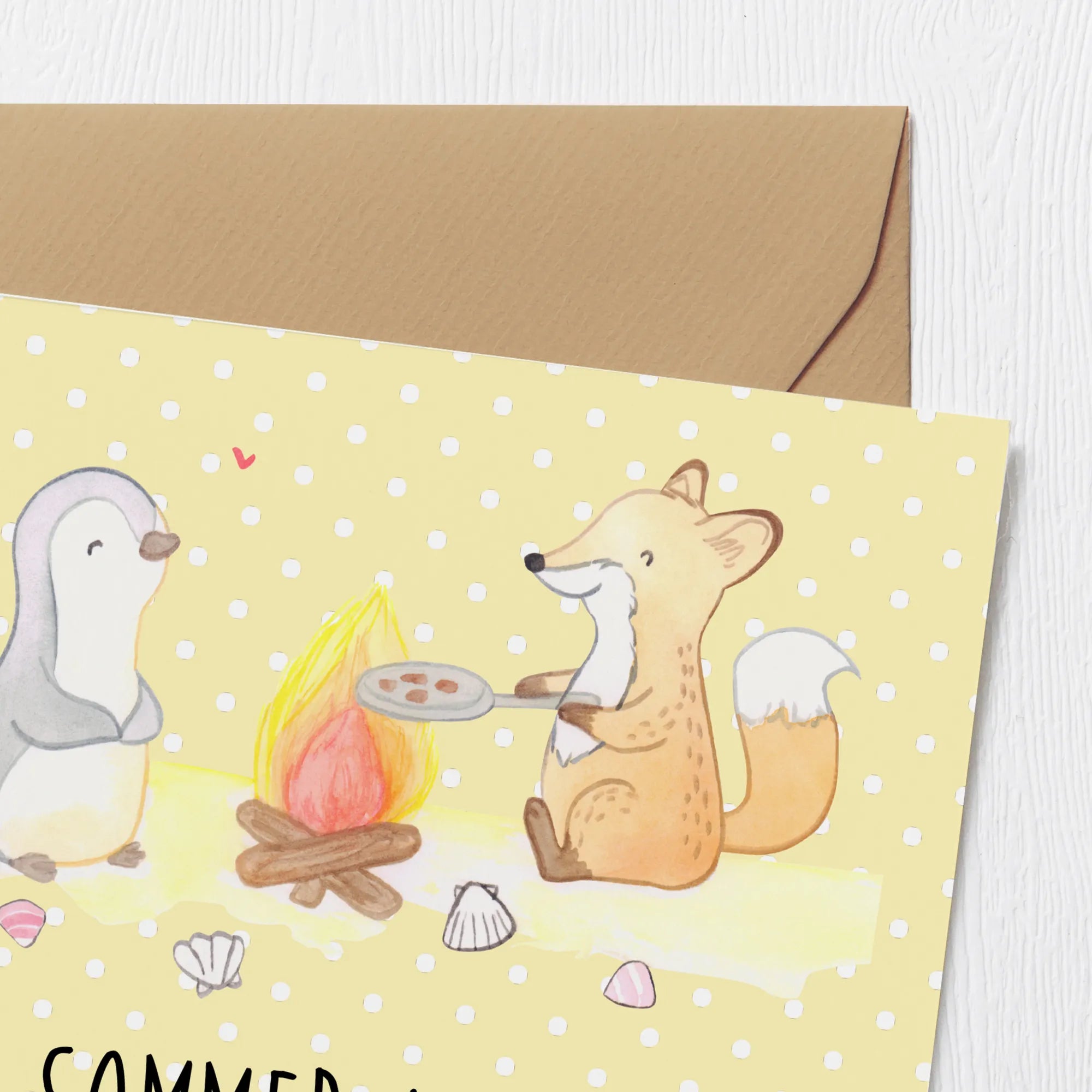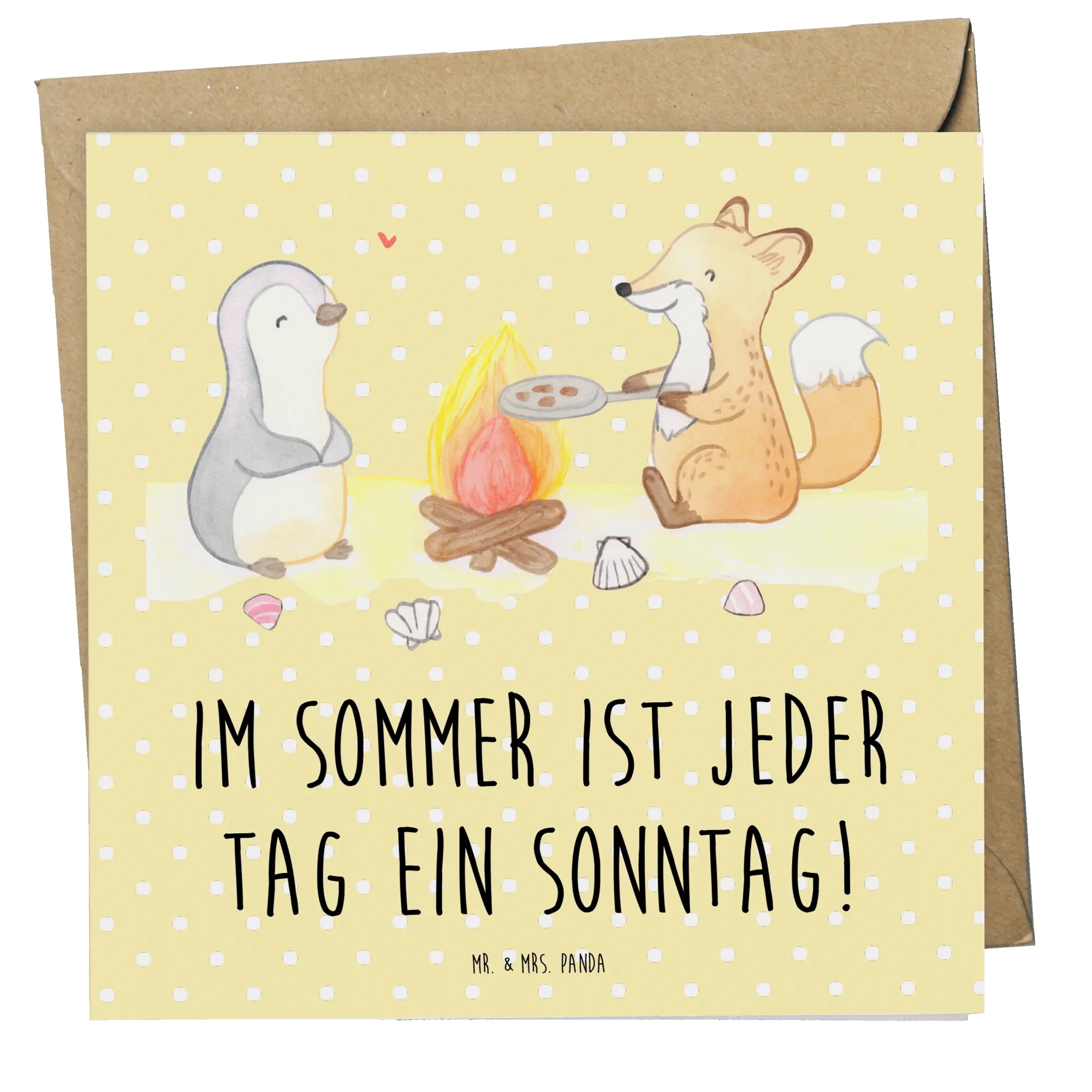 Diese Karte gehört zur exklusiven Kollektion Jahreszeiten von Mr. & Mrs. Panda, die Dich durch alle vier Jahreszeiten begleitet. Der Sommer ist eine Zeit voller Freude, Abenteuer und unvergesslicher Momente – schreibe Deinen Freunden und Familie, wie sehr sie Dir am Herzen liegen und warum sie träumen sollten, solange die Sonne scheint.