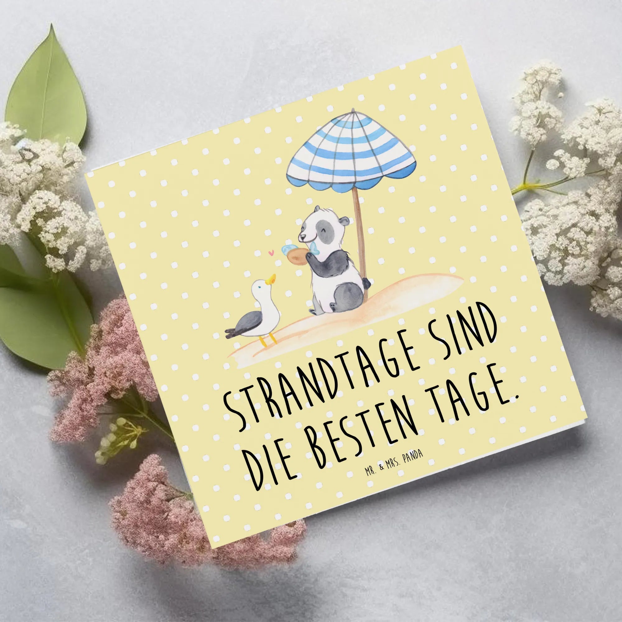 Entdecke die Deluxe Karte Sommer, Meer & Strand aus der bezaubernden Kollektion Jahreszeiten von Mr. & Mrs. Panda! Diese wunderschöne und besonders hochwertige quadratische Karte (140 mm x 140 mm) ist perfekt für all die schönen Anlässe im Leben, sei es ein Geburtstag, ein Jubiläum oder sogar eine Hochzeit. Der Spruch 'Strandtage sind die besten Tage.' auf der Vorderseite bringt sofort ein Lächeln ins Gesicht und zaubert sommerliche Gefühle in jedes Herz. Ob du sie als Glückwunschkarte oder Einladungskarte verwendest, diese Karte ist ein echter Hingucker und sorgt für Freude!