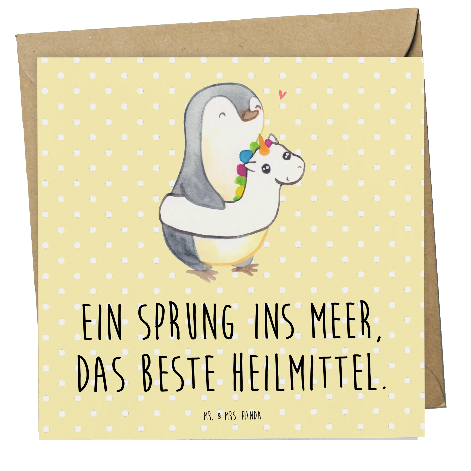 Die liebevoll gestaltete Karte ist aus edlem, 300 Gramm schwerem Karton gefertigt und bietet eine hochglänzend veredelte Vorderseite und Rückseite. Die matte Innenseite ermöglicht es dir, persönliche Nachrichten oder Glückwünsche problemlos zu verfassen. Mit dem Spruch 'Ein Sprung ins Meer, das beste Heilmittel.' erhältst du nicht nur eine Karte, sondern ein wahres Stück Sommer ins Haus.