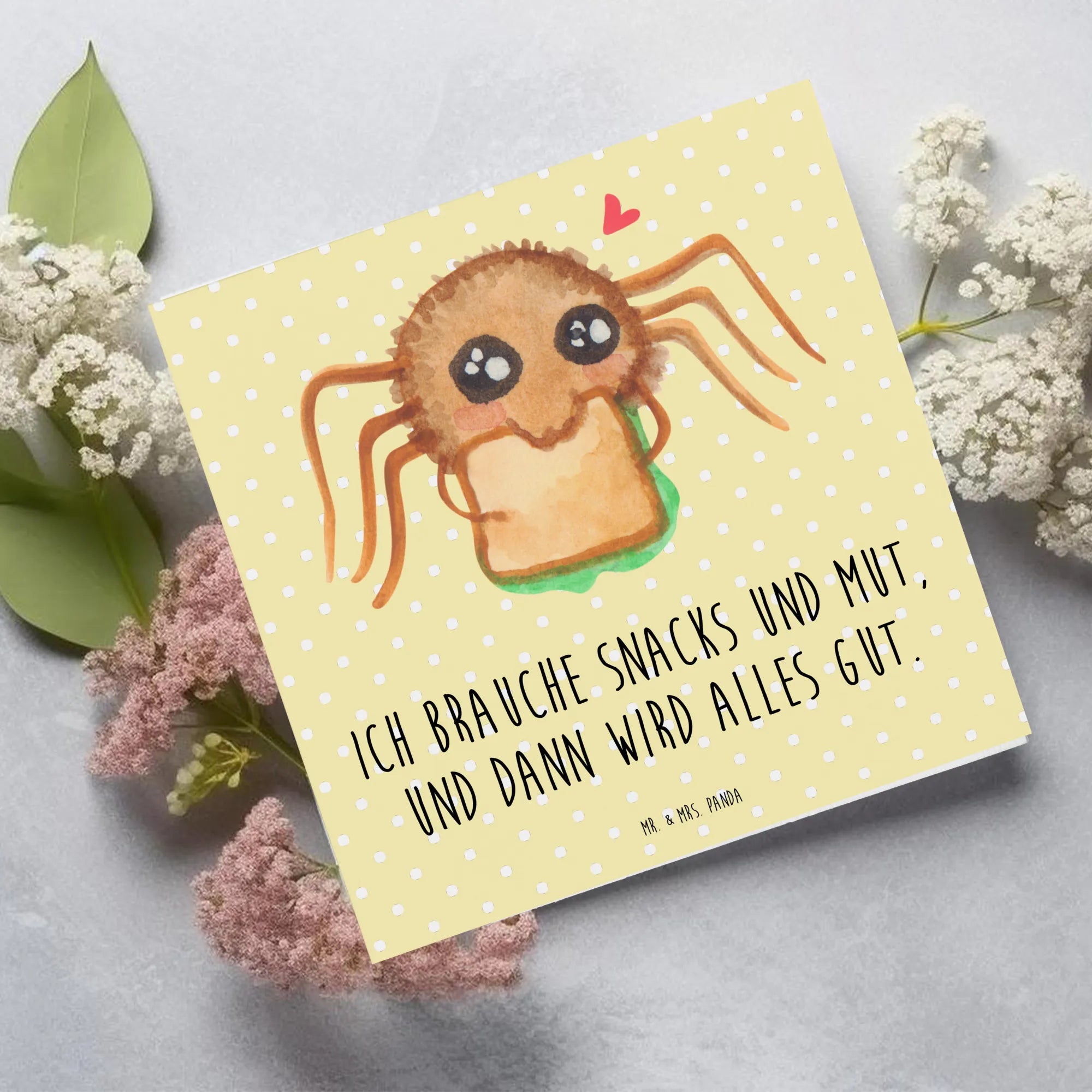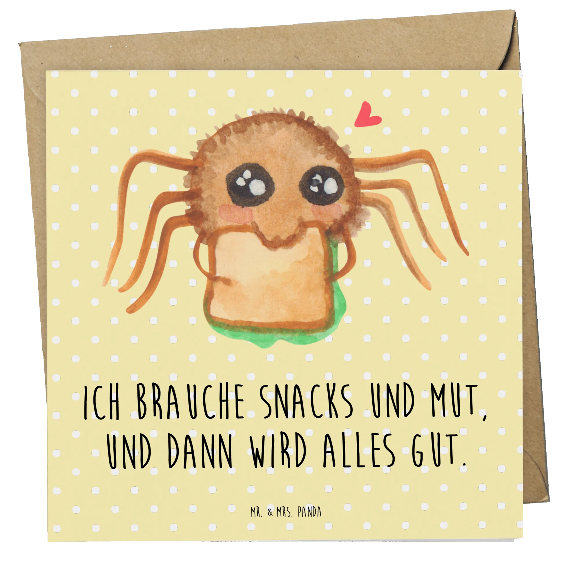 Die Deluxe Karte "Spinne Agathe Sandwich" von Mr. & Mrs. Panda ist das perfekte Geschenk für jeden Anlass. Die wunderschöne quadratische Karte bringt Freude und Lebensfreude in jedes Zuhause.