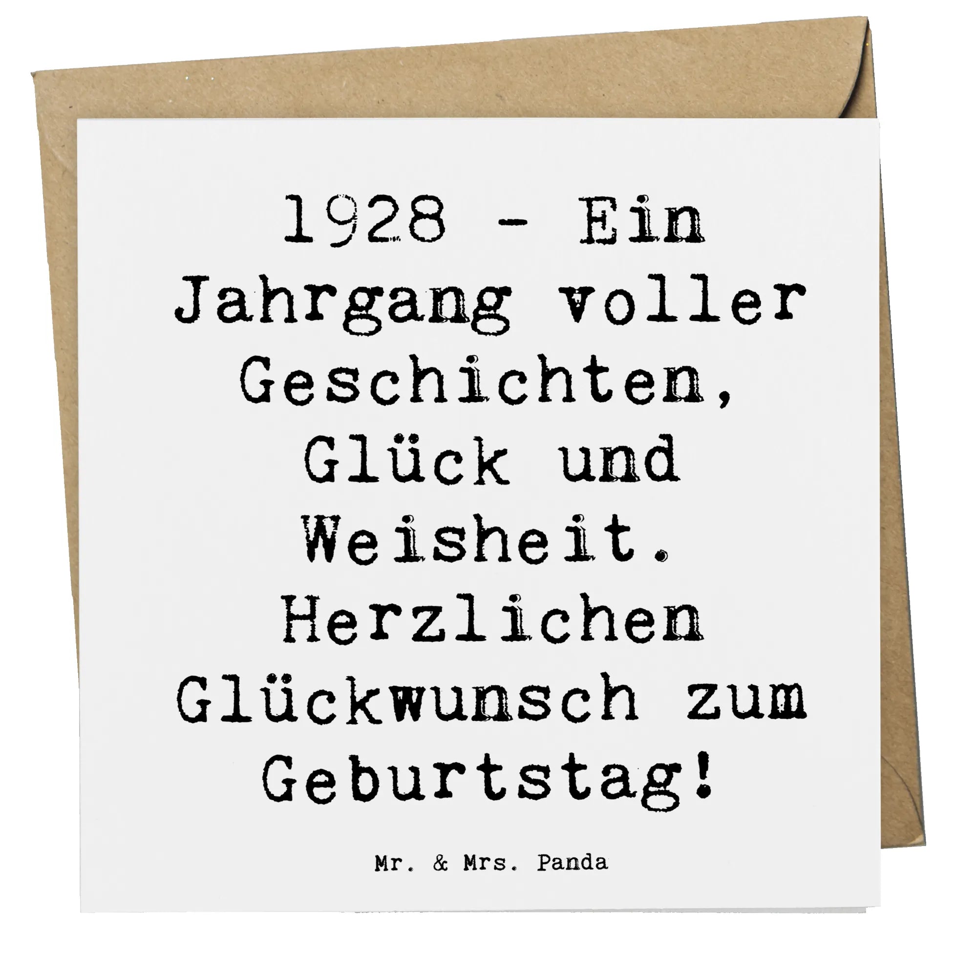 Die Deluxe Karte 1928 Geburtstag aus unserer einzigartigen Geburtstag Geburtsjahr-Kollektion von Mr. & Mrs. Panda ist nicht nur eine Karte, sondern ein kleines Kunstwerk, das für besondere Anlässe gedacht ist. Besonders perfekt für all jene, die 2028 einen runden Geburtstag feiern, bringt diese Karte die einzigartigen Geschichten, Glück und Weisheit eines ganzen Jahrgangs zum Ausdruck. Mit einem herzlichen Spruch: '1928 - Ein Jahrgang voller Geschichten, Glück und Weisheit. Herzlichen Glückwunsch zum Geburtstag!' verzaubert sie jeden, der sie erhält.