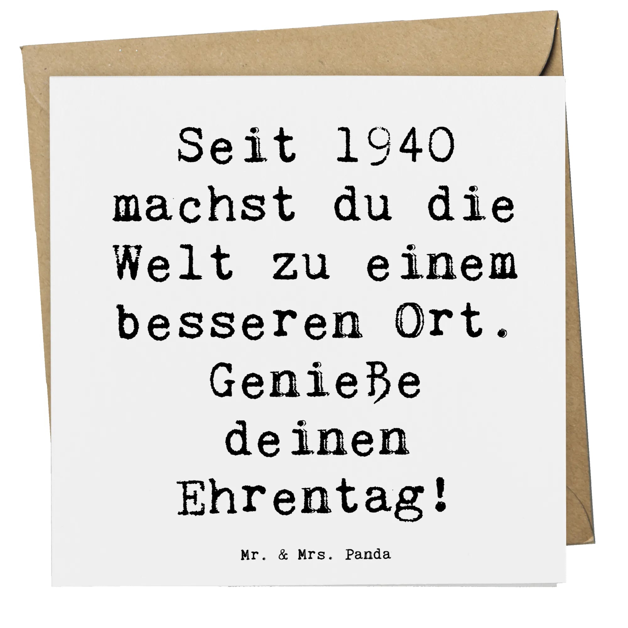 Die Deluxe Karte 1940 Geburtstag von Mr. & Mrs. Panda ist das perfekte Geschenk für alle, die jemandem zu einem besonderen Geburtstag gratulieren möchten. Diese hochwertige Klappkarte ist nicht nur einladend gestaltet, sondern vermittelt auch persönliche Glückwünsche mit einem liebevollen Spruch: "Seit 1940 machst du die Welt zu einem besseren Ort. Genieße deinen Ehrentag!"