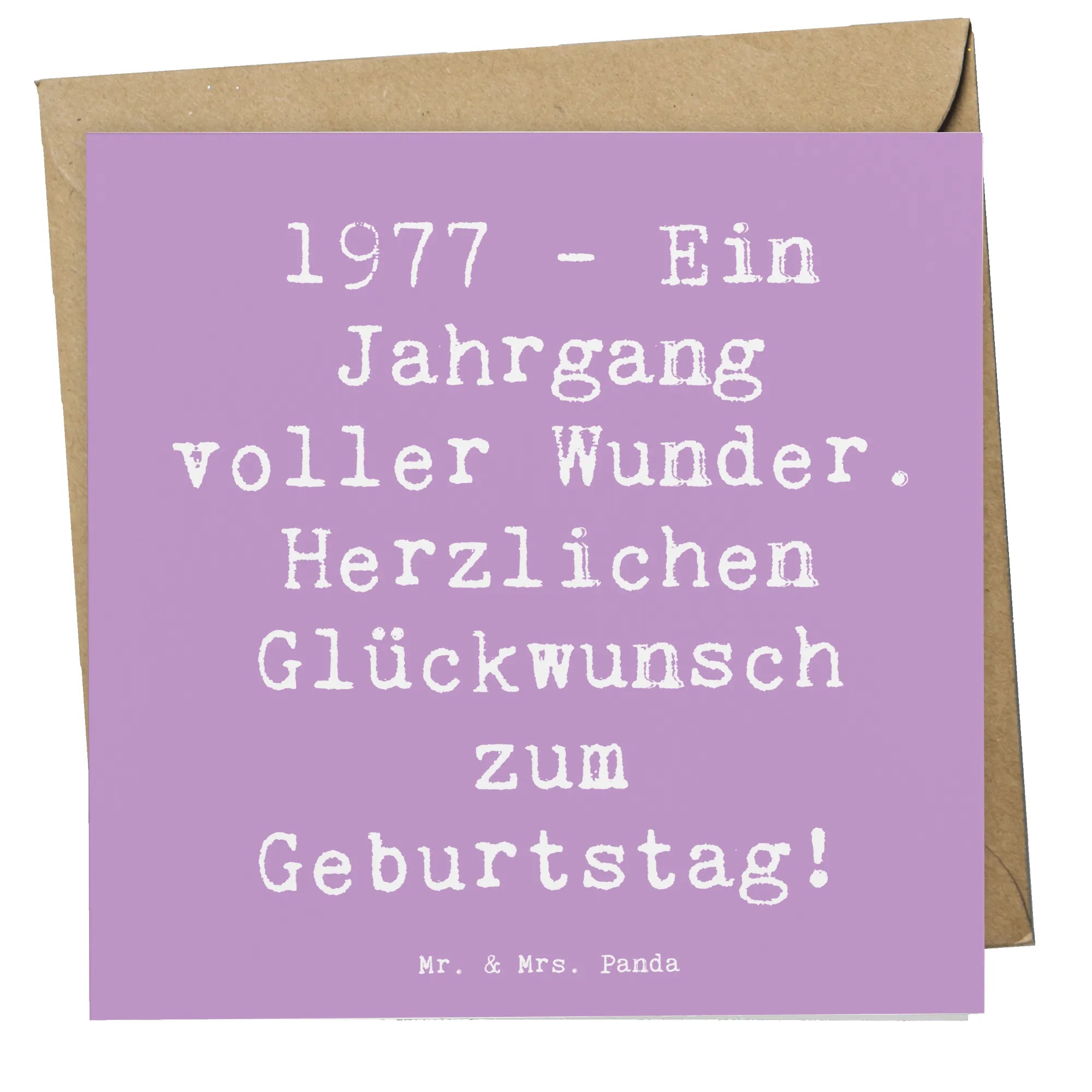 Herzlich willkommen in der wundervollen Welt von Mr. & Mrs. Panda! Unsere Deluxe Karte zum 50. Geburtstag, entworfen mit dem süßesten Motiv '1977 - Ein Jahrgang voller Wunder', ist das perfekte Geschenk für alle, die 1977 das Licht der Welt erblickt haben. Diese besondere Grußkarte ist nicht nur hochwertig und schön, sondern erzählt auch die Geschichte eines ganz besonderen Jahrgangs.