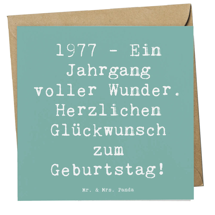 Die Deluxe Karte '1977 - Ein Jahrgang voller Wunder' von Mr. & Mrs. Panda ist die perfekte Wahl, um einem besonderen Menschen zum Geburtstag zu gratulieren. Egal, ob Du einen Freund, ein Familienmitglied oder einen Kollegen beschenken möchtest, diese edle Klappkarte wird sicherlich ein Lächeln auf das Gesicht des Empfängers zaubern. Mit ihrem charmanten Design und dem liebevollen Spruch 'Herzlichen Glückwunsch zum Geburtstag!' bringt die Karte die unvergesslichen Erinnerungen des Jahres 1977 zurück und lässt das Herz höher schlagen.