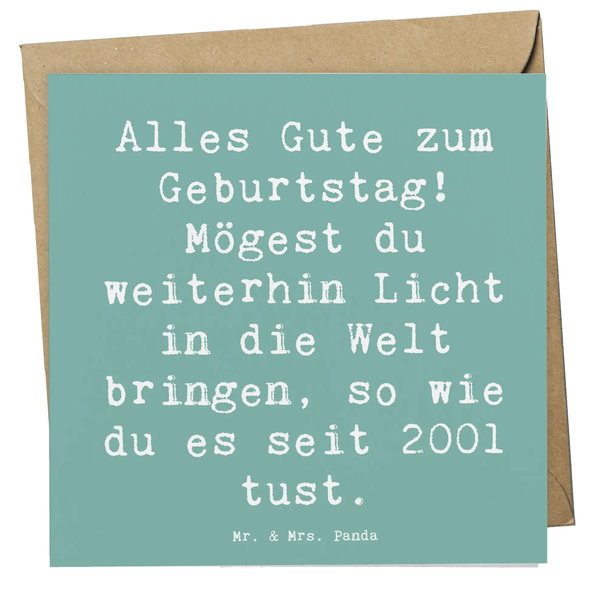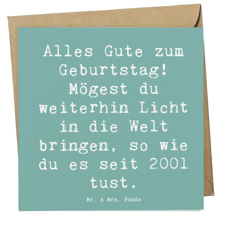 Der besondere Spruch "Alles Gute zum Geburtstag! Mögest du weiterhin Licht in die Welt bringen, so wie du es seit 2001 tust." verleiht der Karte eine liebevolle Note und macht sie einzigartig. Ob für Familie, Freunde oder Kollegen, diese Karte spricht jeden an und ist ideal als Glückwunschkarte oder Einladungskarte zum Geburtstag. Sie eignet sich auch perfekt als Geburtstagsgeschenk, um jemanden an seinem speziellen Tag zu überraschen.