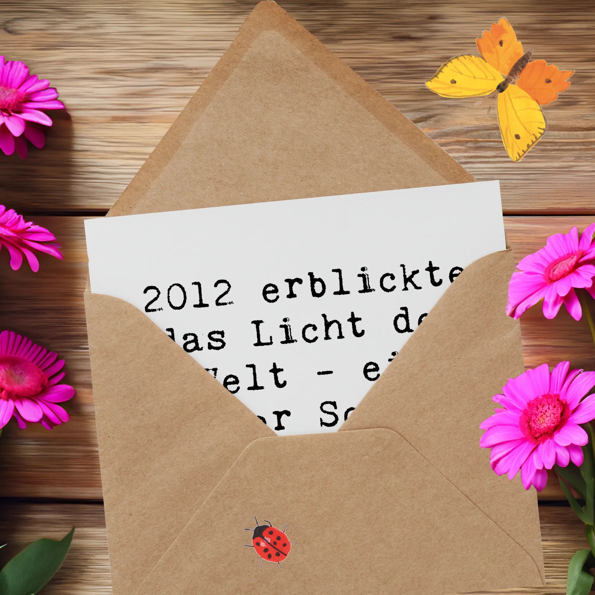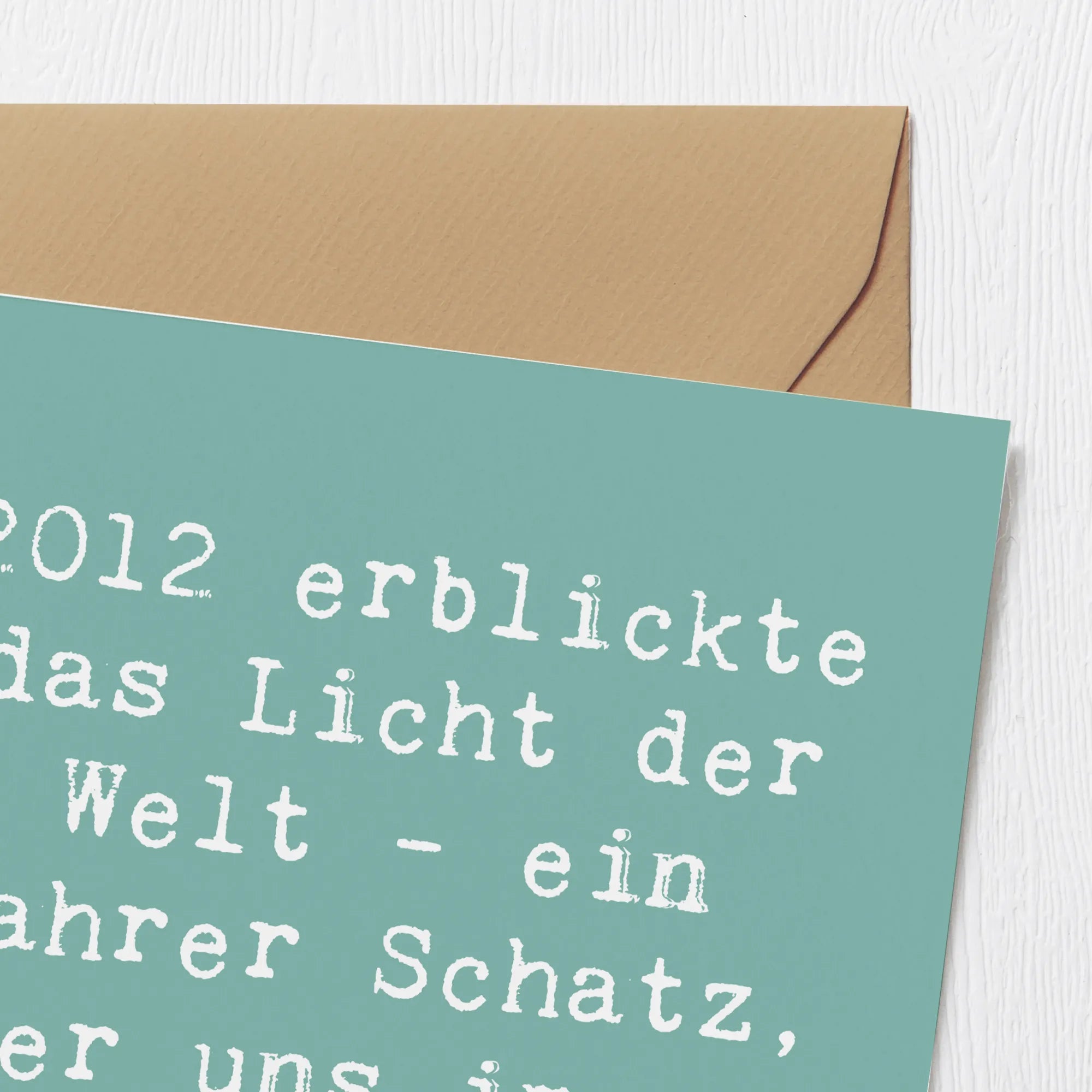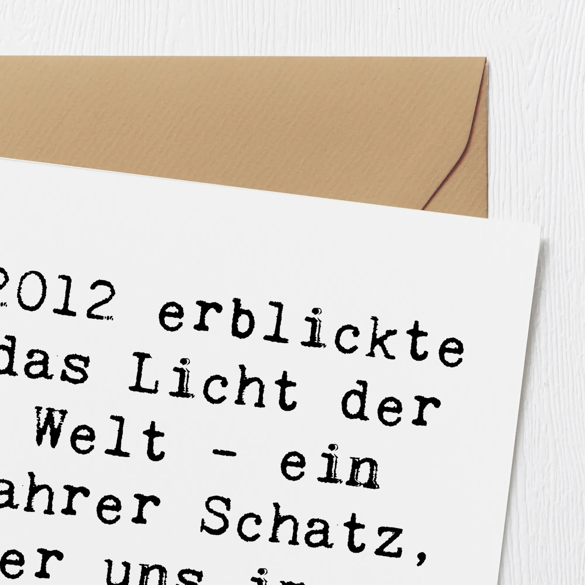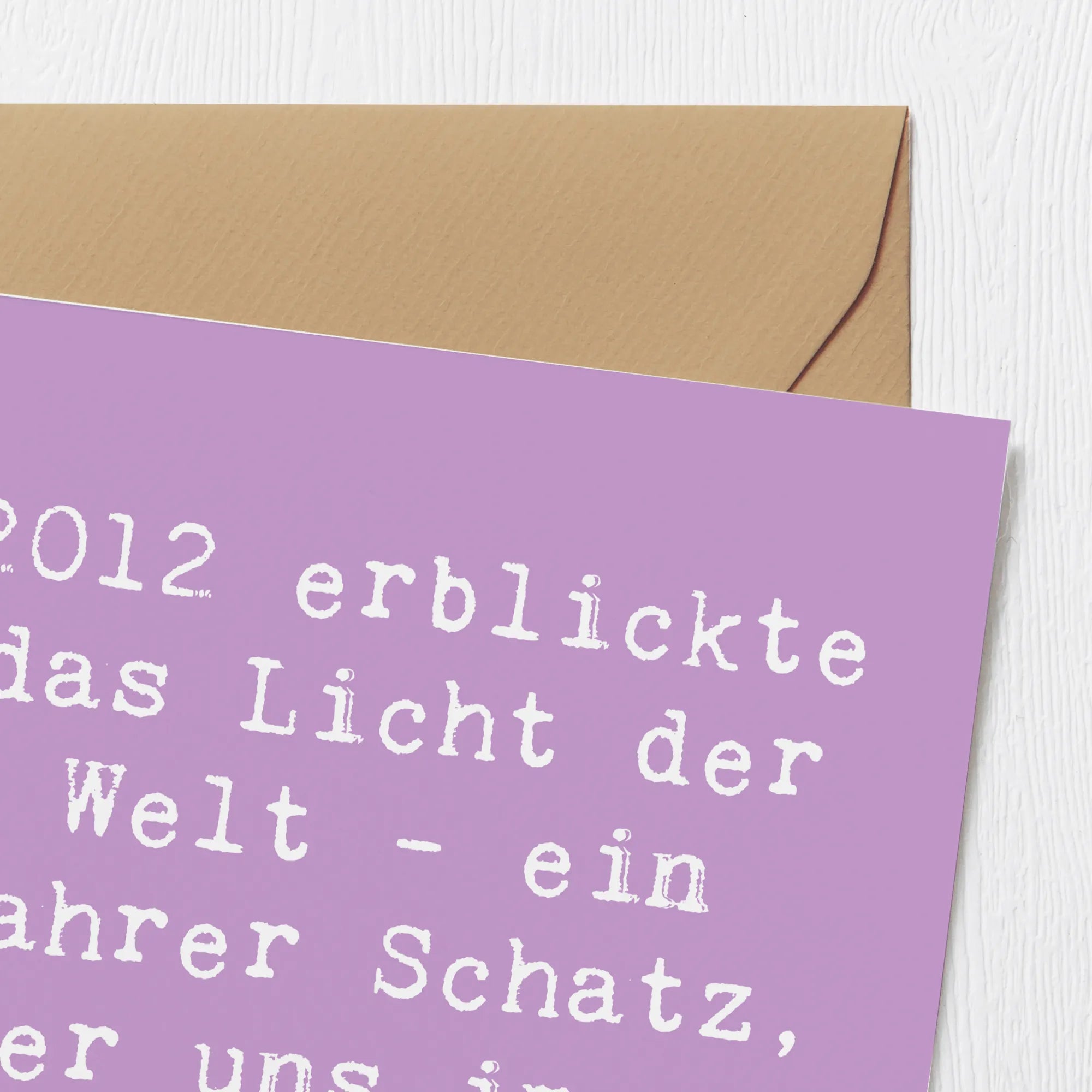 Mit dem Spruch '2012 erblickte das Licht der Welt - ein wahrer Schatz, der uns immer begleiten wird' trifft diese Karte genau ins Herz. Sie ist perfekt für Geburtstagsfeiern, aber auch für andere feierliche Anlässe wie Hochzeiten oder Jubiläen.