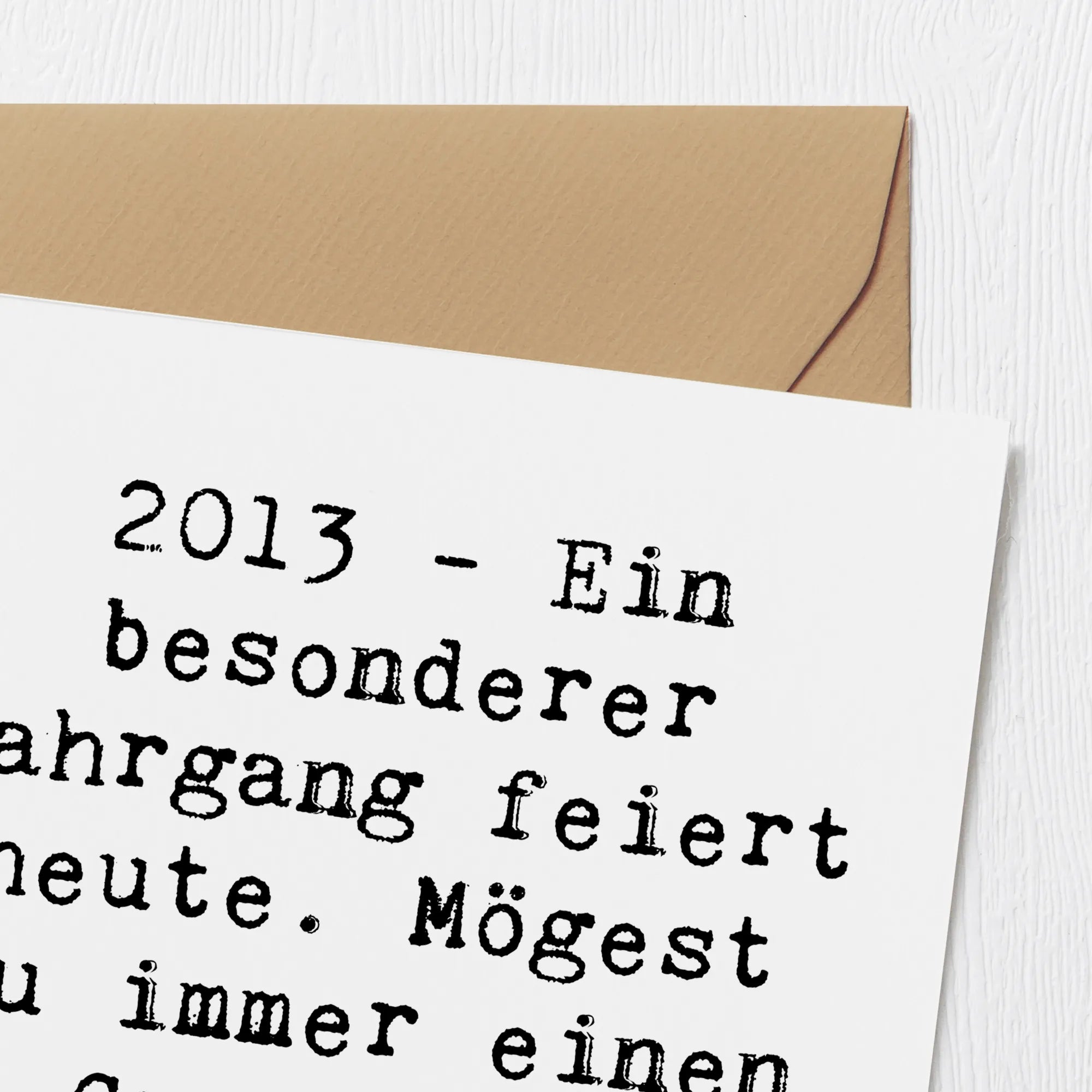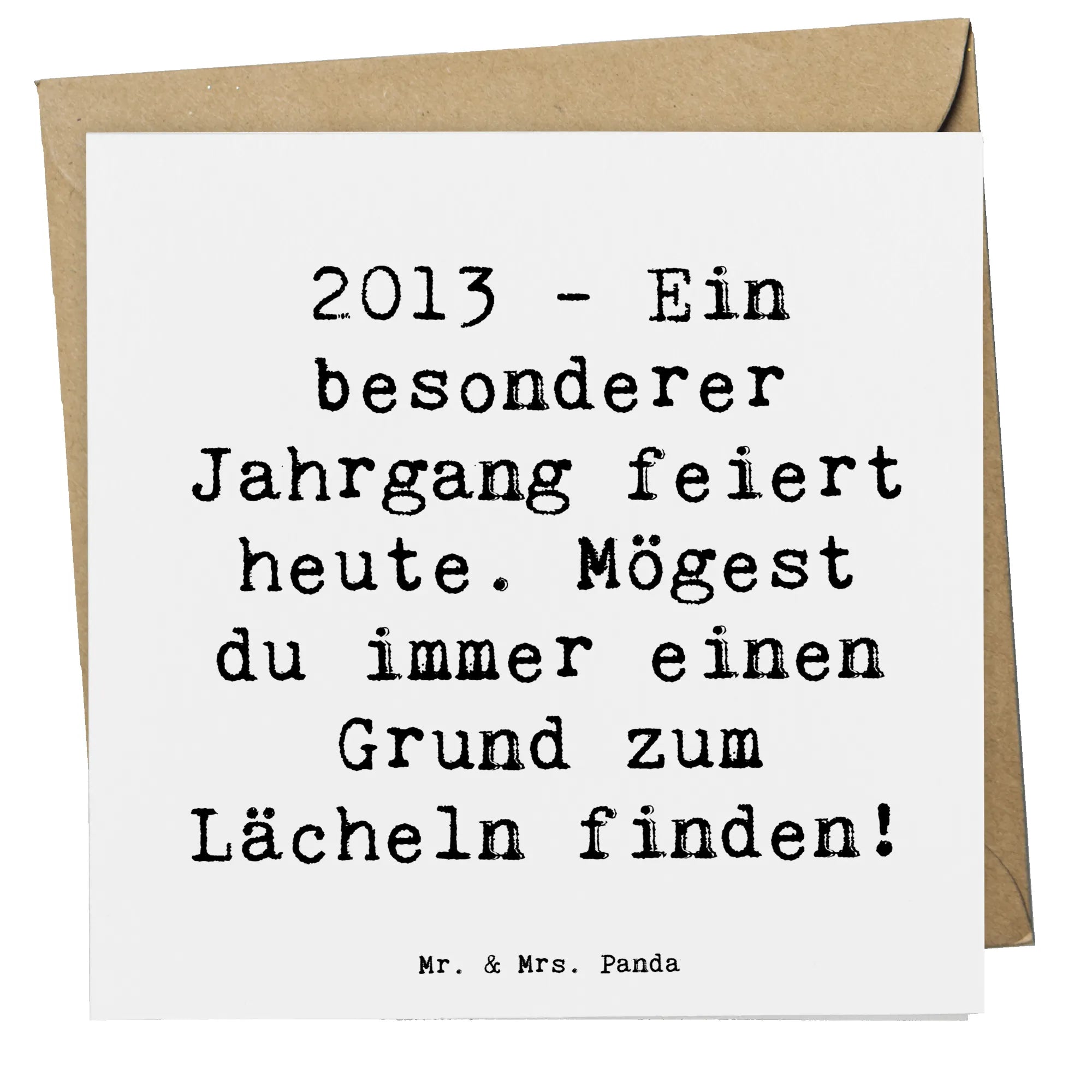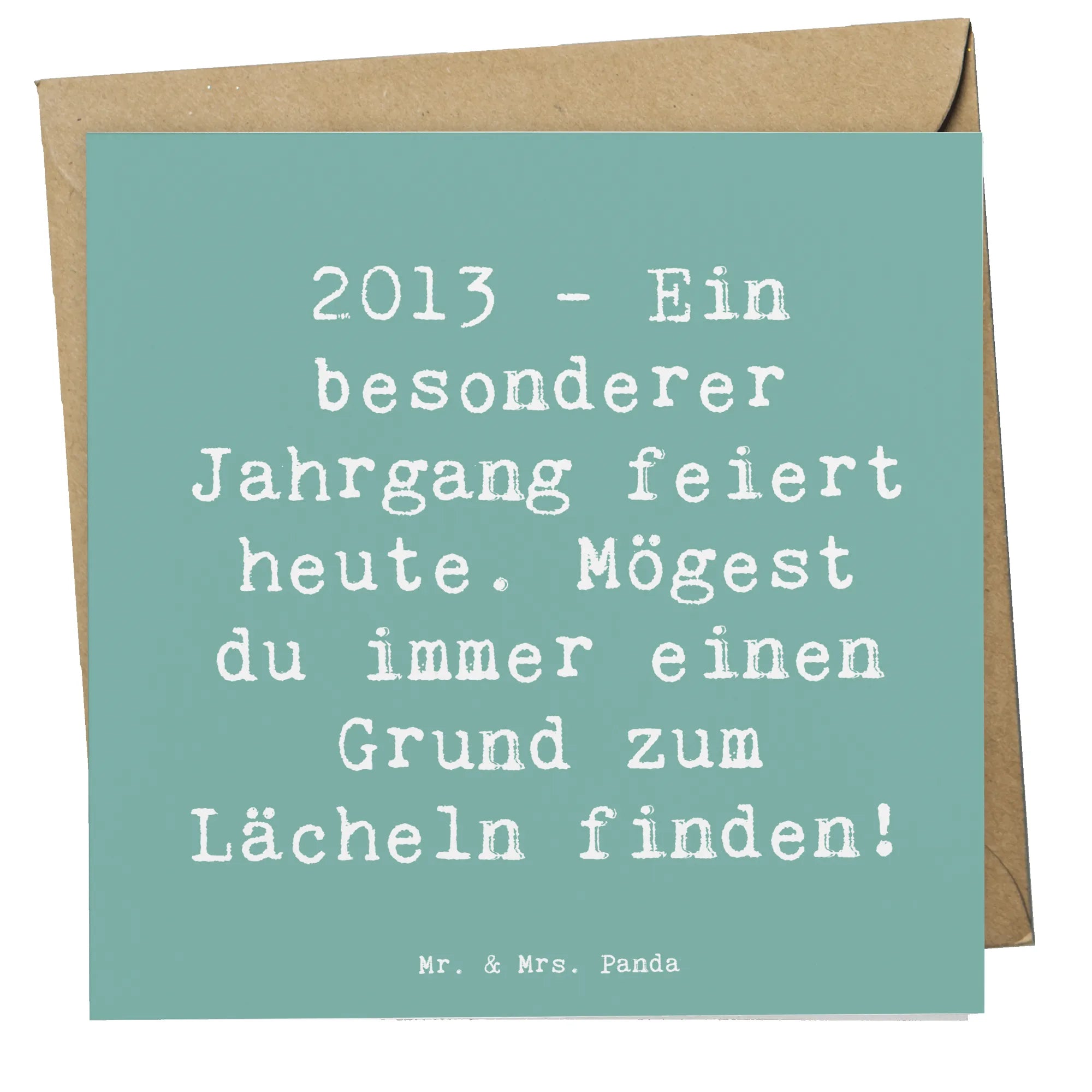 Die Deluxe Karte "2013 Geburtstag" aus der exklusiven Kollektion Geburtstag Geburtsjahr von Mr. & Mrs. Panda ist das perfekte Geschenk für alle, die einen besonderen Ehrentag feiern! Mit einem zauberhaften Spruch ausgestattet: "2013 - Ein besonderer Jahrgang feiert heute. Mögest du immer einen Grund zum Lächeln finden!", bringt diese hochwertige Klappkarte Freude und persönliche Botschaften zusammen.
