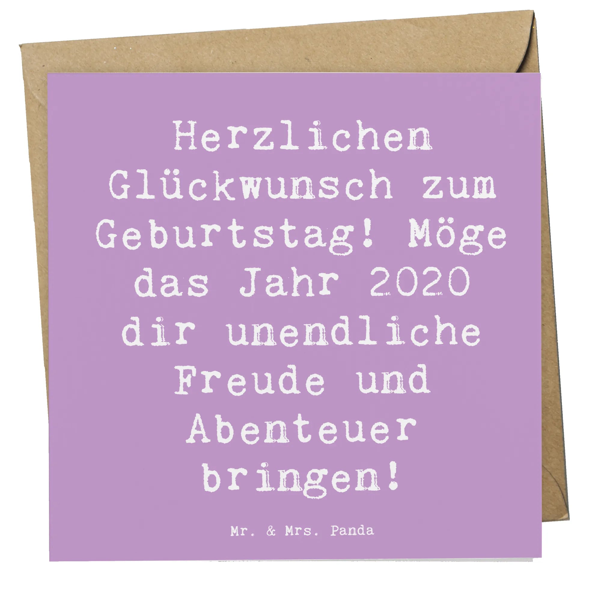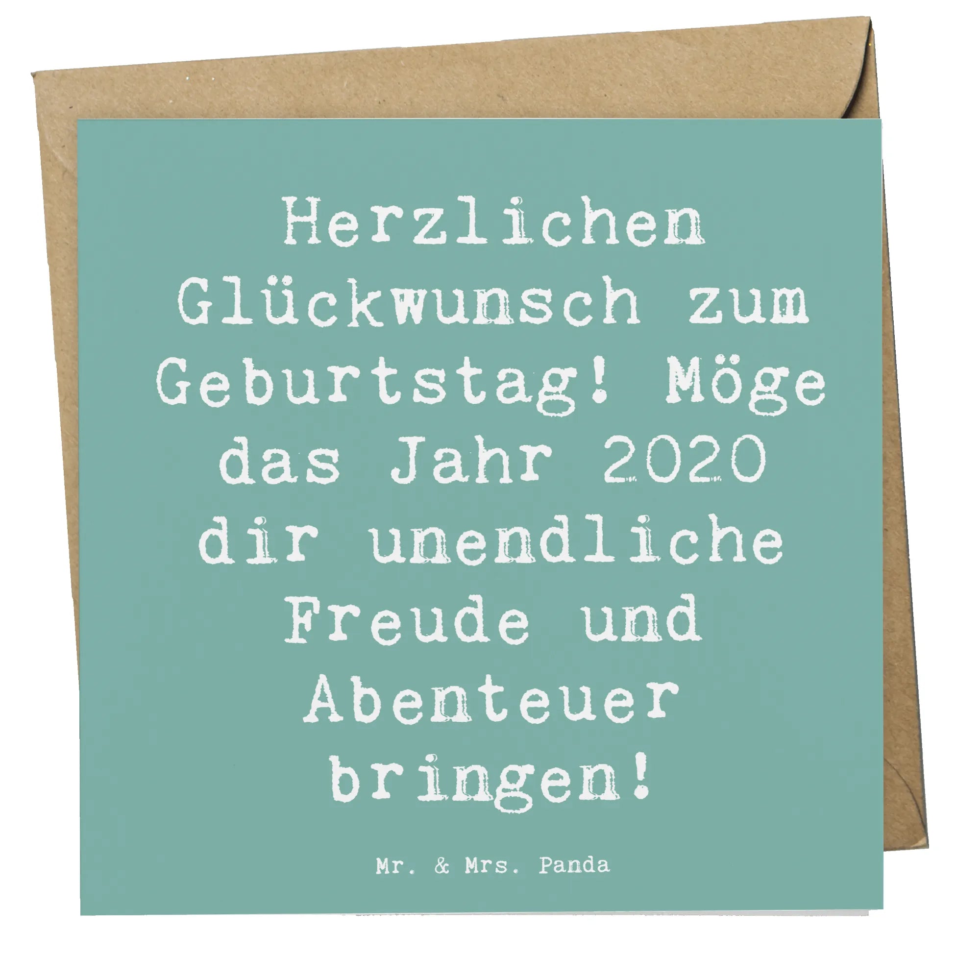 Die Vorderseite ziert ein liebevoll gestaltetes Motiv mit dem Spruch: "Herzlichen Glückwunsch zum Geburtstag! Möge das Jahr 2020 dir unendliche Freude und Abenteuer bringen!" Dieser wunderbare Wunsch ist nicht nur ein Spruch, sondern ein Versprechen für ein Jahr voller Glücksmomente, die alle festgehalten werden sollten.