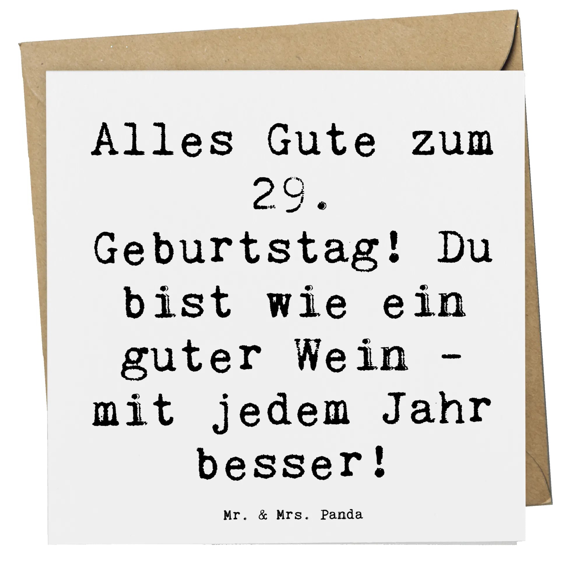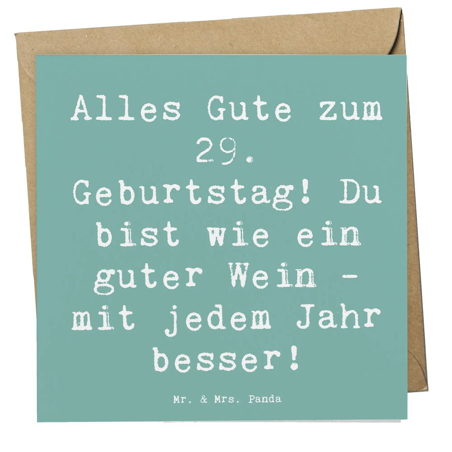Die Deluxe Karte zum 29. Geburtstag von Mr. & Mrs. Panda ist der perfekte Begleiter für jeden, der seinen Freunden oder Lieblingsmenschen zu einem besonderen Anlass gratulieren möchte. Mit ihrem liebevoll gestalteten Motiv und dem herzlichen Spruch "Alles Gute zum 29. Geburtstag! Du bist wie ein guter Wein - mit jedem Jahr besser!" bringt diese Karte Freude und Lebensfreude.