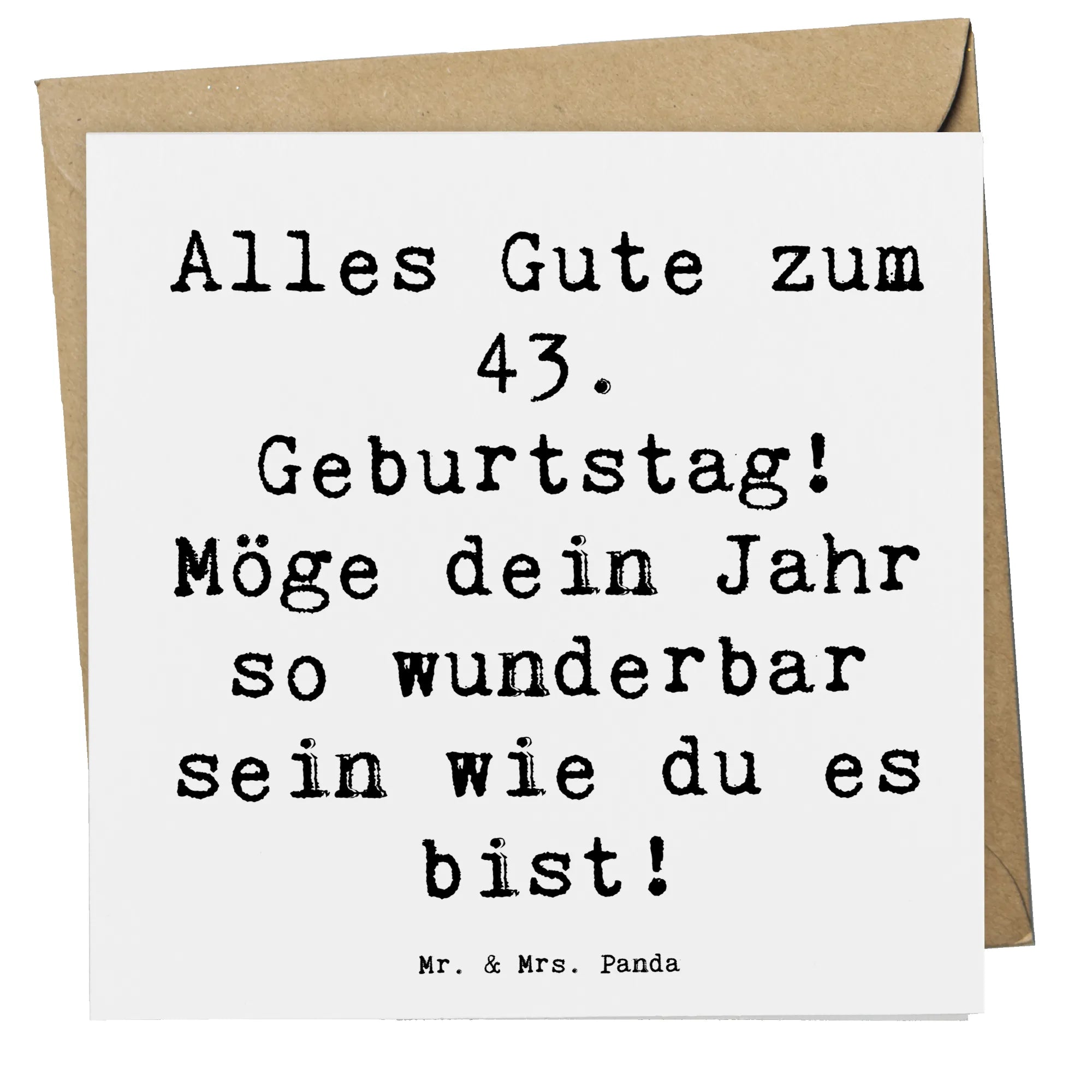 Die Deluxe Karte zum 43. Geburtstag von Mr. & Mrs. Panda ist das perfekte Geschenk für alle, die diesen besonderen Tag gebührend feiern möchten! Mit einem charmanten Slogan "Alles Gute zum 43. Geburtstag! Möge dein Jahr so wunderbar sein wie du es bist!" eignet sich diese Karte ideal für Geburtstagsgrüße, Glückwünsche und Einladungen. Sie vermittelt Freude und Lebensfreude und wird sicherlich das Herz des Empfängers erwärmen.