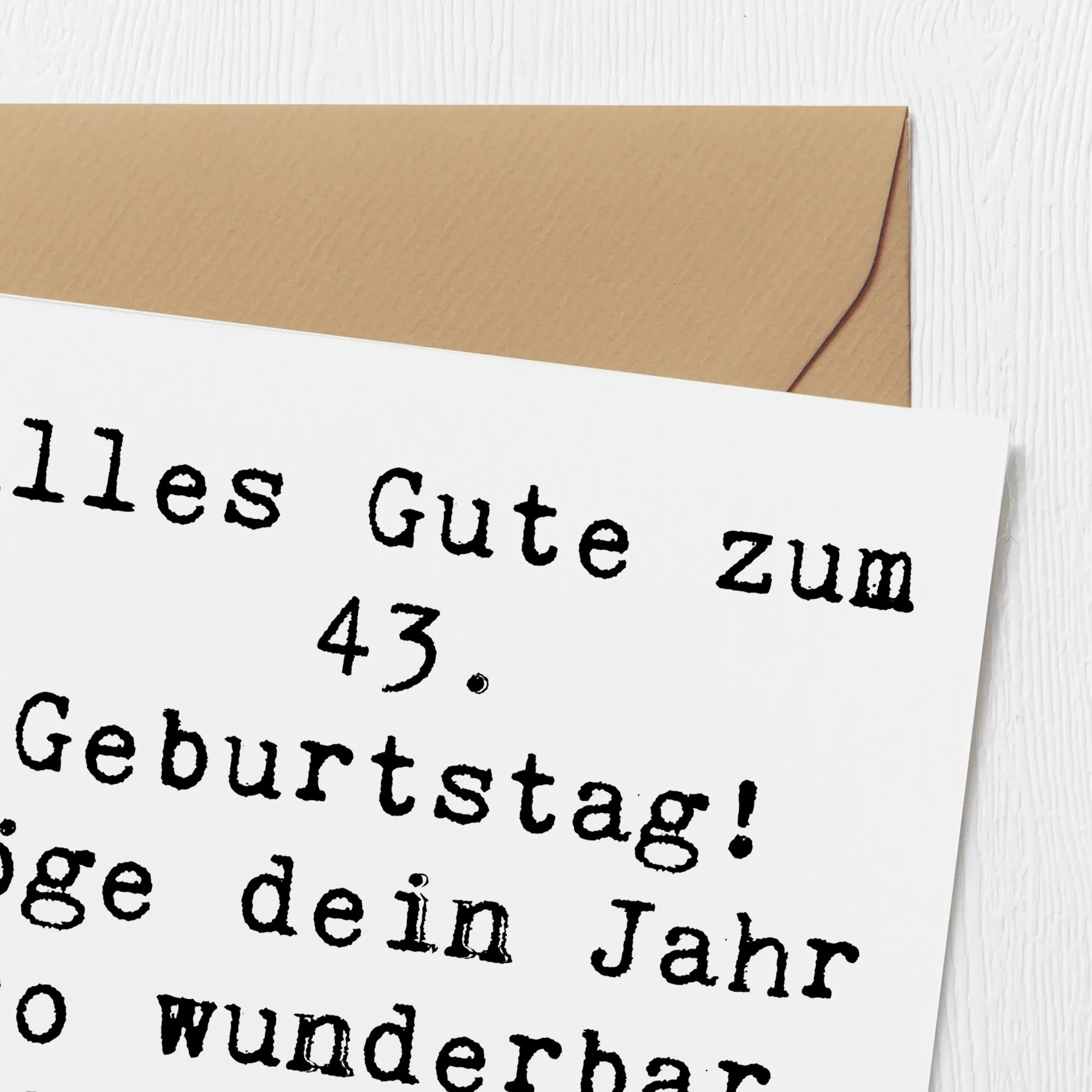 Verschenke Freude und verschenke Erinnerungen! Die Deluxe Karte zum 43. Geburtstag wird zusammen mit einem eleganten Umschlag geliefert, sodass du direkt bereit bist, deine Glückwünsche zu überbringen. Verwöhne deine Liebsten mit dieser tollen Glückwunschkarte und erlebe die Freude des Schenkens!