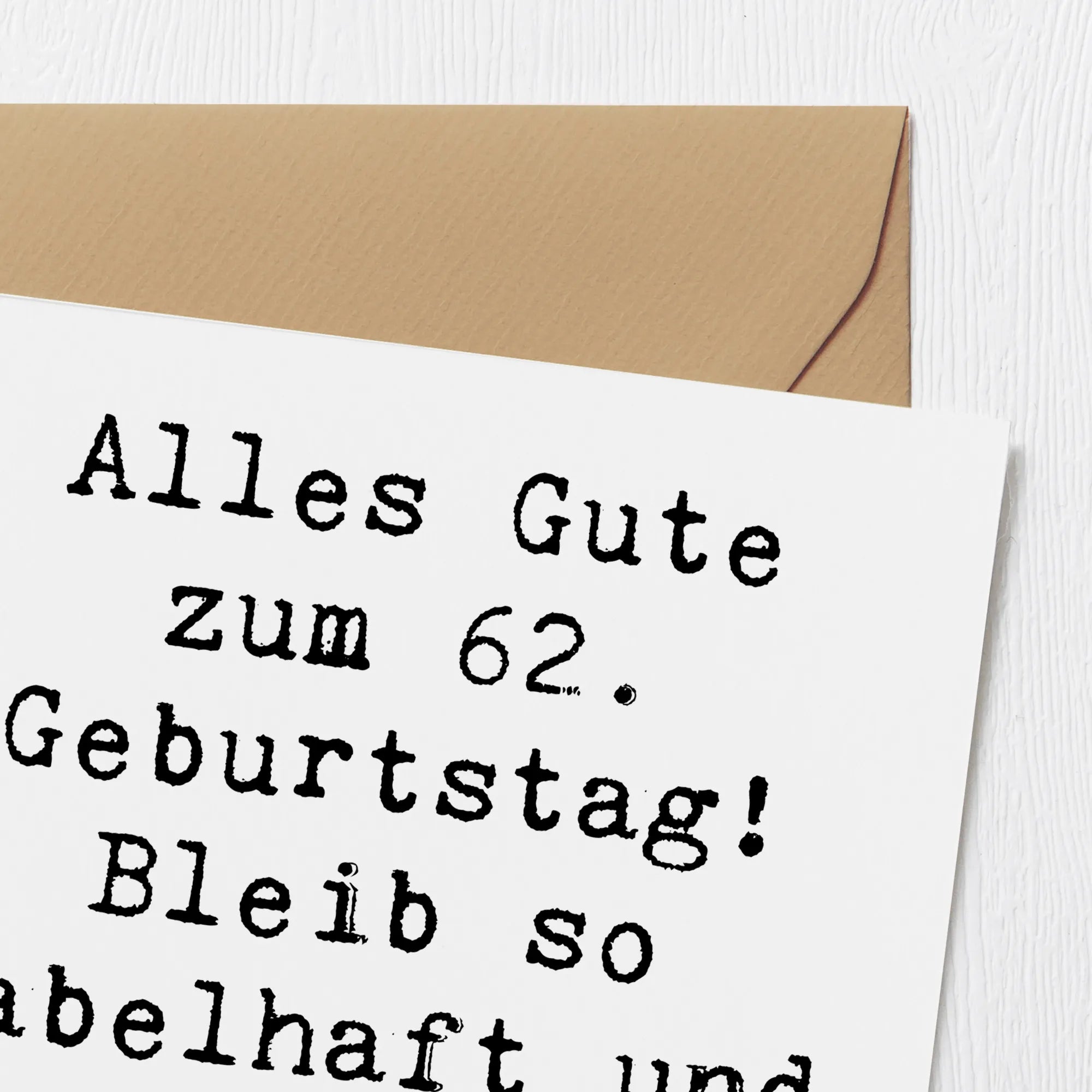 Mit einem liebevollen Spruch "Alles Gute zum 62. Geburtstag! Bleib so fabelhaft und inspirierend, wie du bist." ist diese Karte ein ideales Mitbringsel, um jemandem zu zeigen, wie wertvoll er in deinem Leben ist.