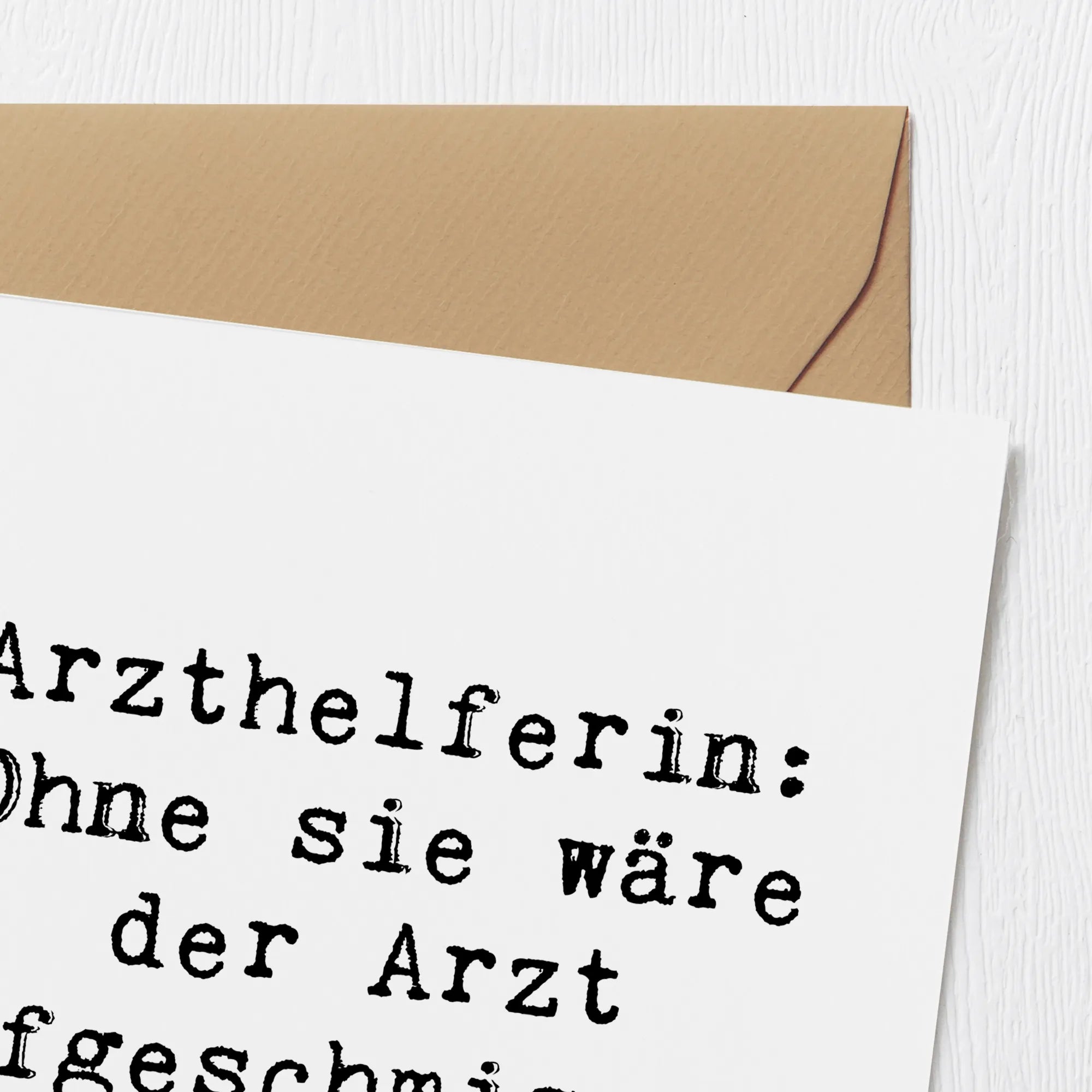 Die Deluxe Karte "Arzthelferin: Ohne sie wäre der Arzt aufgeschmissen!" von Mr. & Mrs. Panda ist das perfekte Geschenk für alle, die im medizinischen Bereich arbeiten oder eine Arzthelferin besonders wertschätzen. Mit ihrer liebevollen Gestaltung, die von Hand gezeichnet wurde, bringt diese Karte Freude und Anerkennung.