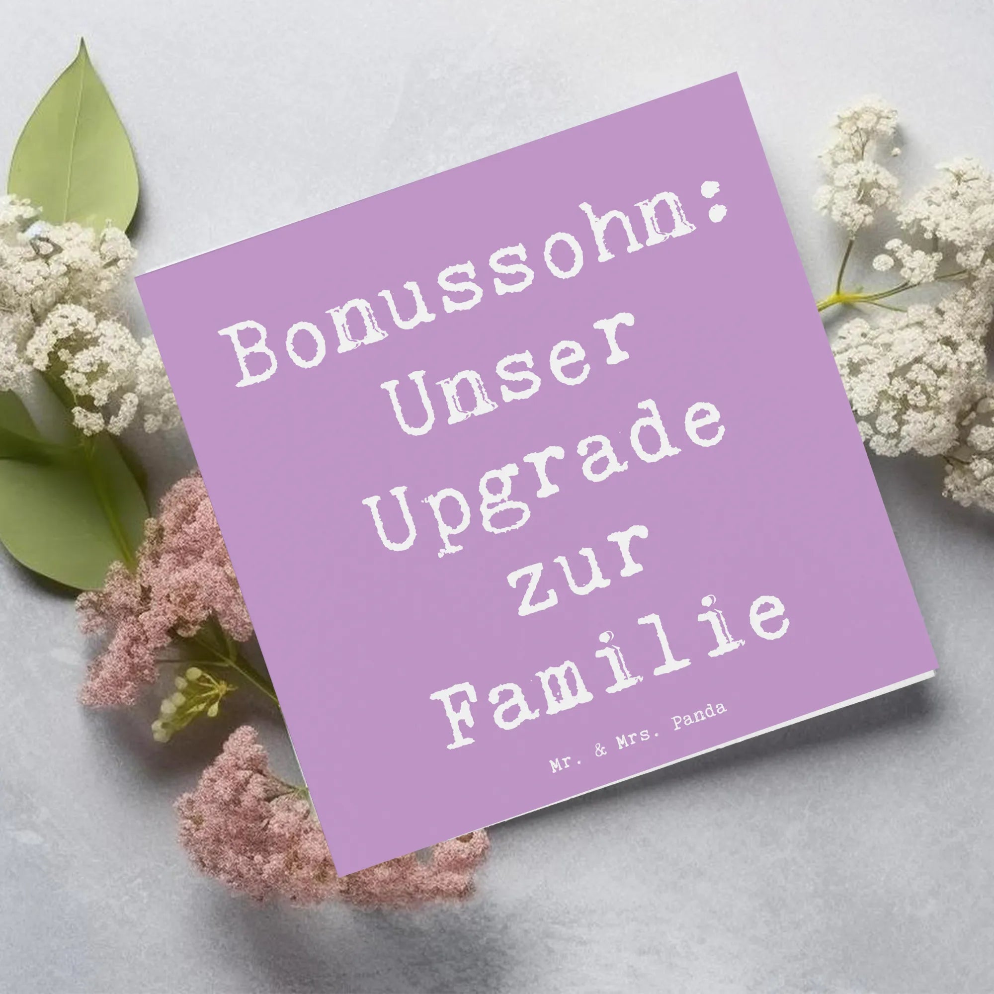 Die Deluxe Karte "Bonussohn: Unser Upgrade zur Familie" von Mr. & Mrs. Panda ist das perfekte Geschenk für all jene, die ein ganz besonderes Familienmitglied ehren möchten. Diese wunderschöne und hochwertige Klappkarte begeistert nicht nur durch ihr liebevolles Design, sondern auch durch die herzlichen Worte, die sie in sich trägt.