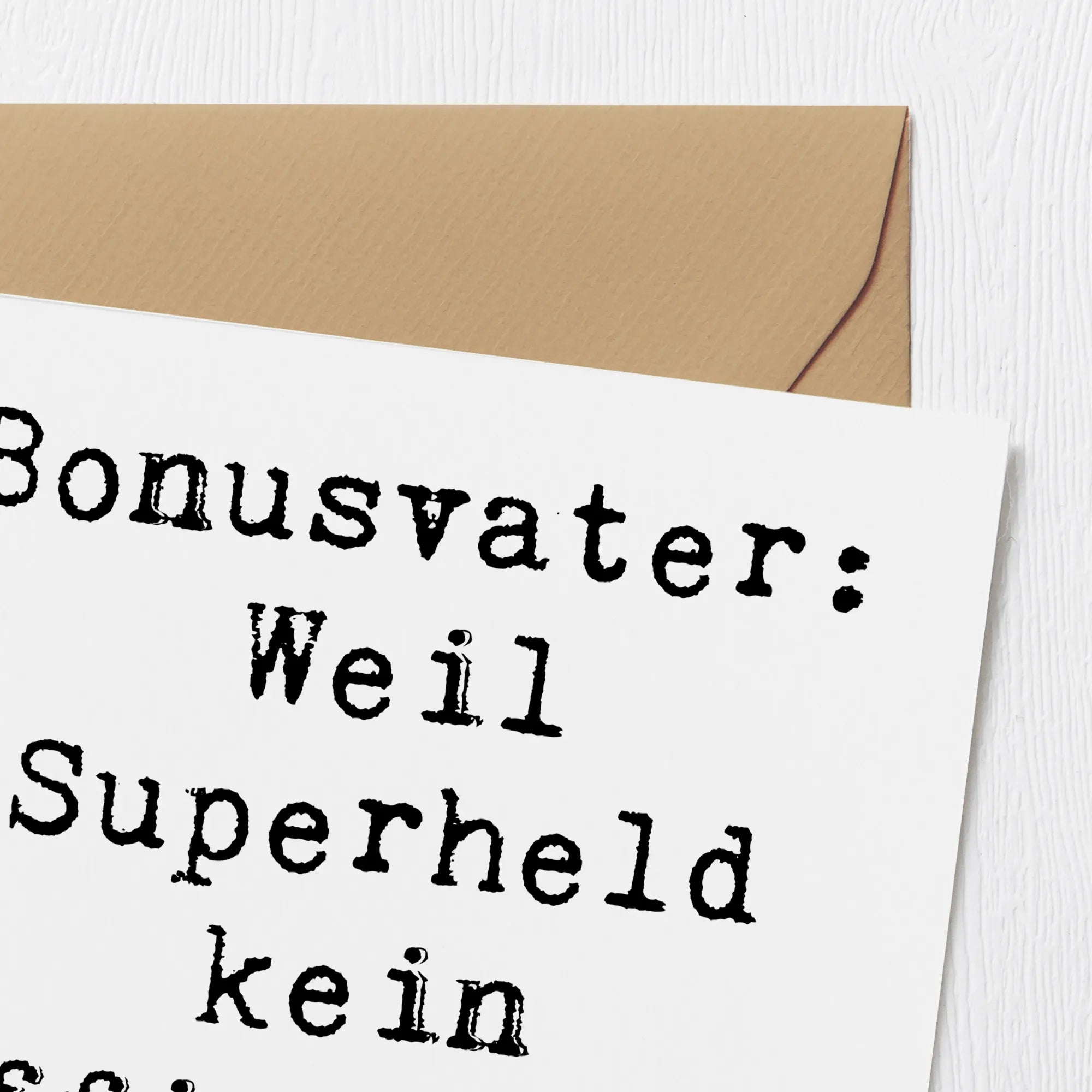 Die Deluxe Karte 'Bonusvater: Weil Superheld kein offizieller Beruf ist.' von Mr. & Mrs. Panda ist das perfekte Geschenk für all jene besonderen Anlässe, an denen Du Deinem Bonusvater zeigen möchtest, wie wichtig er für Dich ist. Ob zum Geburtstag, zu Weihnachten oder einfach als kleine Aufmerksamkeit – diese hochwertige Grußkarte hebt die besondere Beziehung zu Deinem Bonusvater hervor.