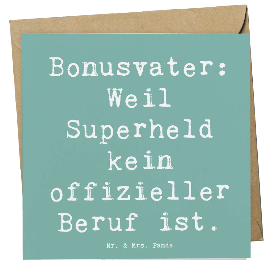 Die Deluxe Karte "Bonusvater: Weil Superheld kein offizieller Beruf ist" von Mr. & Mrs. Panda ist das perfekte Geschenk für all jene, die einen Bonusvater in ihrem Leben haben. Diese wunderschöne und besonders hochwertige quadratische Karte besticht mit einem charmanten Design, das nicht nur das besondere Band zwischen Stiefvater und Stiefkindern feiert, sondern auch die vielen Gemeinsamkeiten, die sie verbinden. Wenn Du einem besonderen Menschen danken, gratulieren oder einfach nur Deine Wertschätzung zeigen möchtest, ist diese Grußkarte die ideale Wahl.