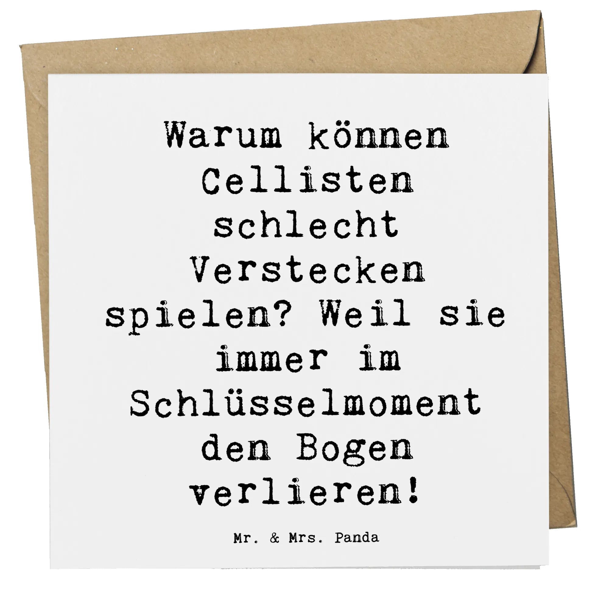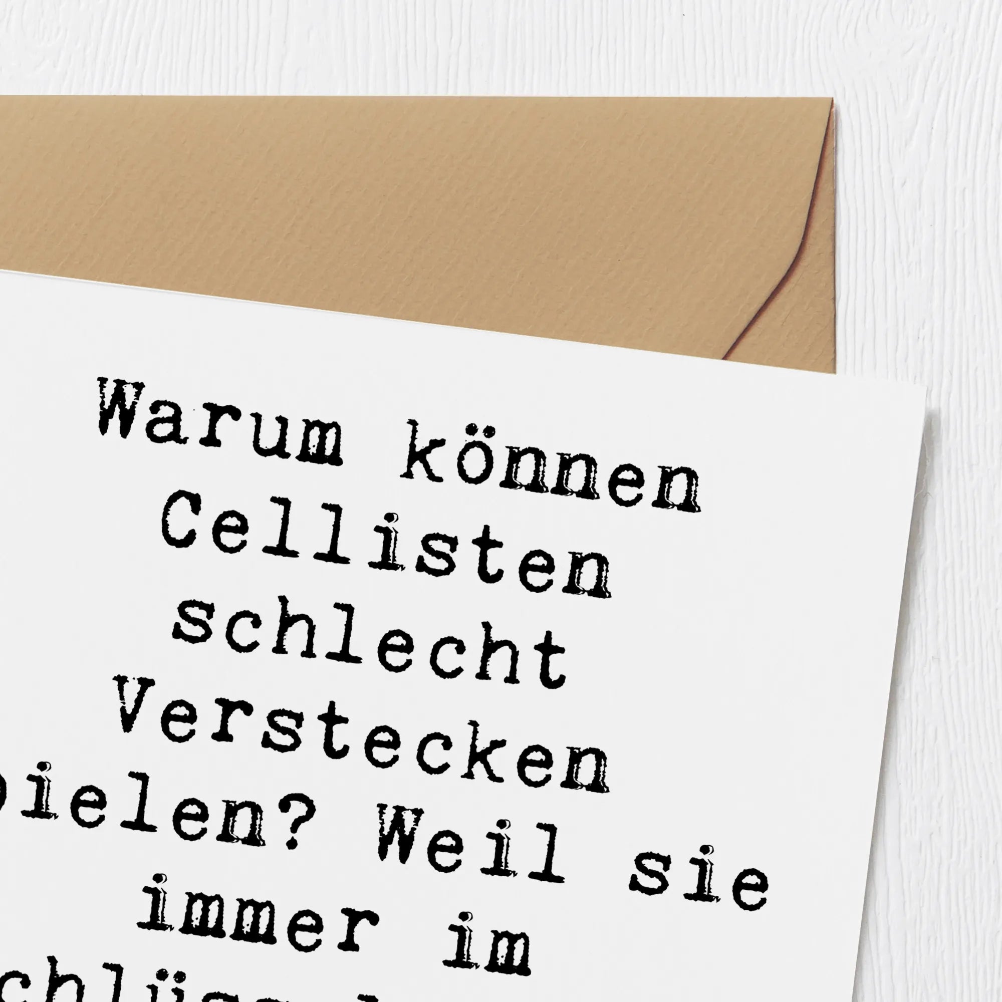 Die Deluxe Karte Cello aus der Mr. & Mrs. Panda Kollektion "Musizieren & Instrumente" ist das perfekte Geschenk für alle Musikliebhaber und Cellisten! Mit ihrem einzigartigen Design und dem witzigen Spruch "Warum können Cellisten schlecht Verstecken spielen? Weil sie immer im Schlüsselmoment den Bogen verlieren!" bringt diese Karte nicht nur Freude, sondern auch einen Schmunzler auf die Gesichter der Beschenkten.