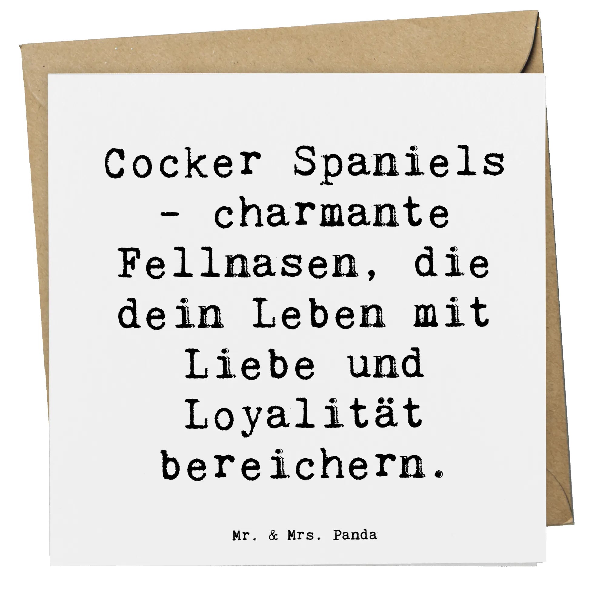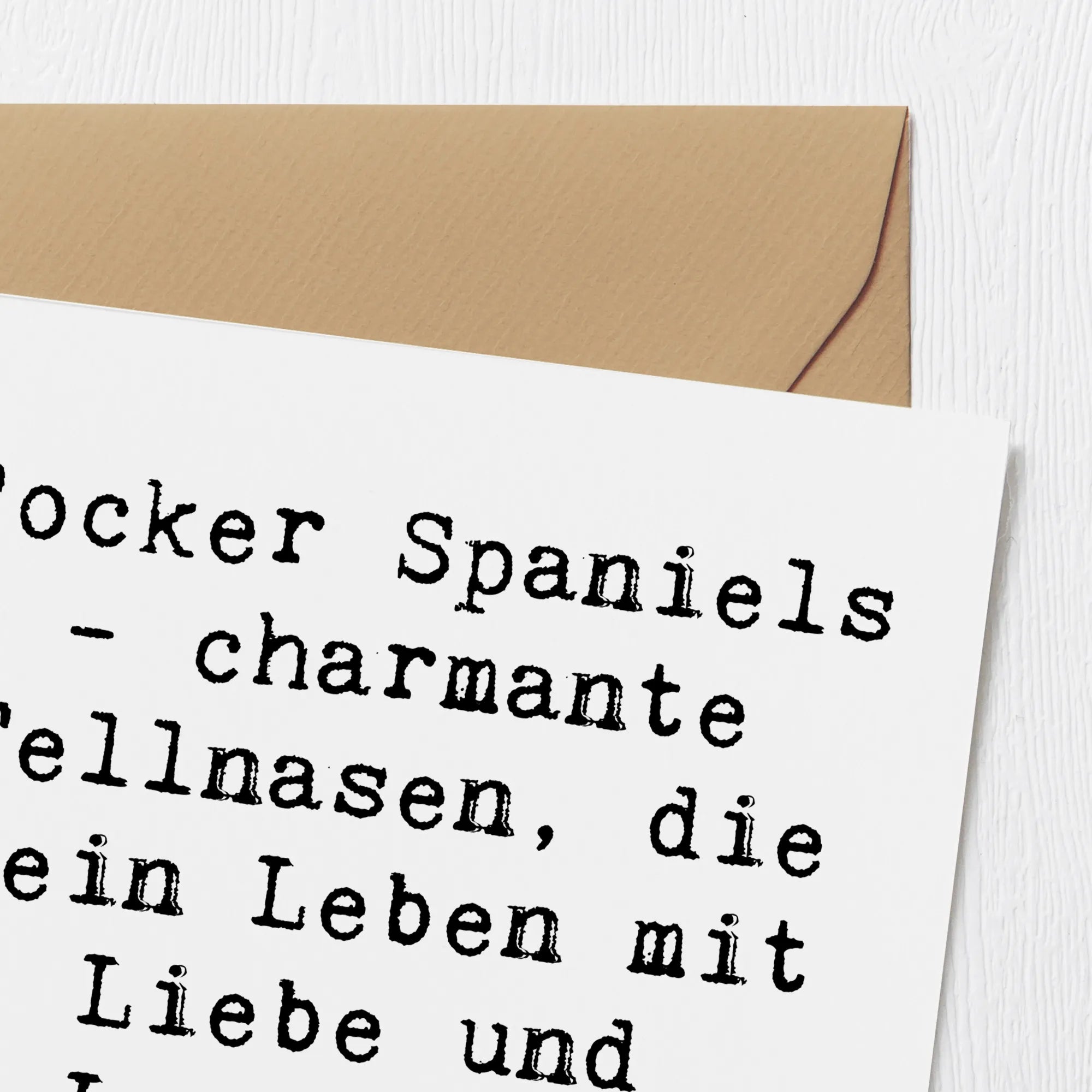 Auf der Vorderseite ziert die Karte ein süßer Cocker Spaniel, der mit seinem charmanten Wesen sofort zum Schmunzeln anregt. Bei dem Spruch „Cocker Spaniels - charmante Fellnasen, die dein Leben mit Liebe und Loyalität bereichern“ handelt es sich um einen liebevollen Text, der die wunderbare Beziehung zwischen Mensch und Hund perfekt beschreibt.