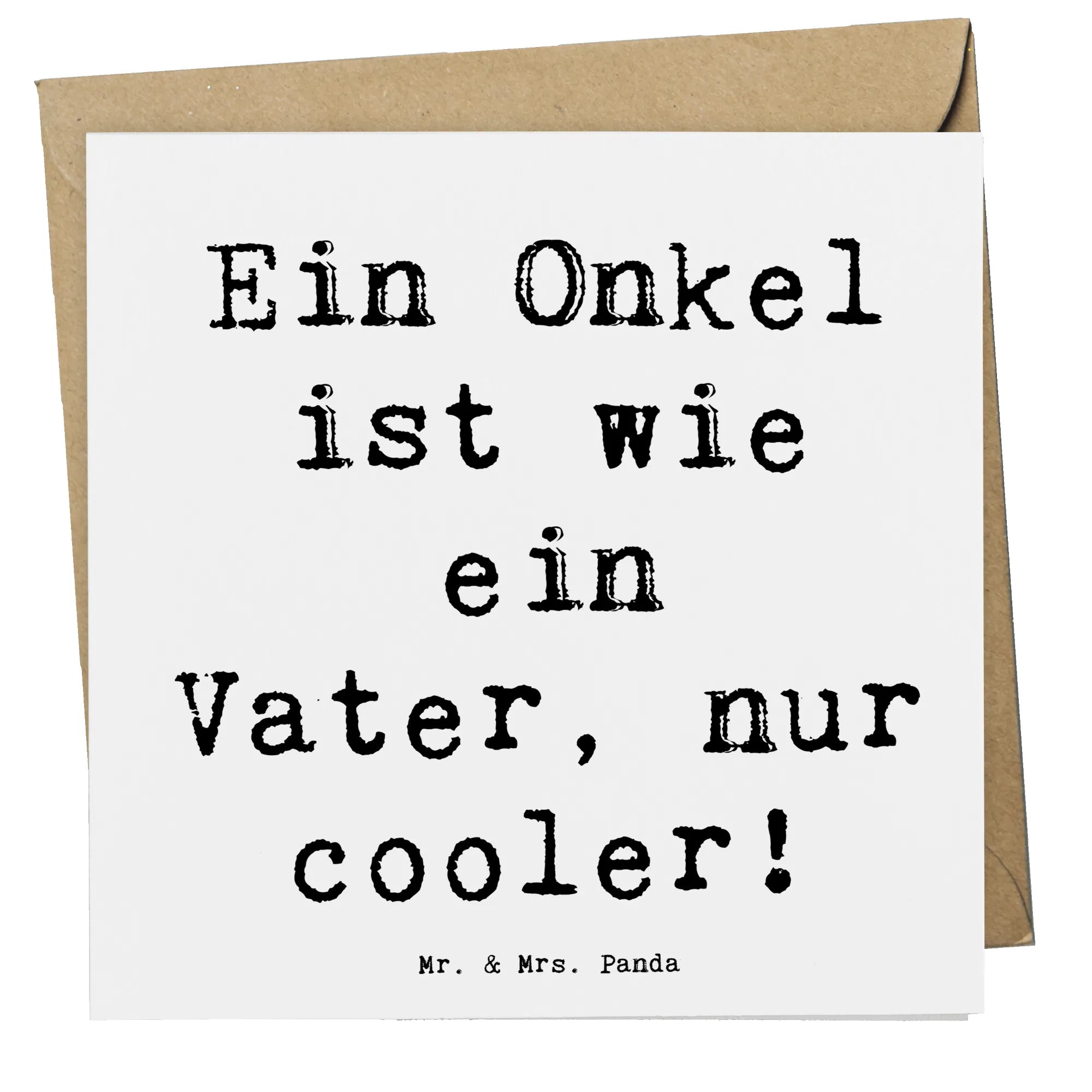 Diese Deluxe Karte von Mr. & Mrs. Panda ist das perfekte Geschenk für Onkel und Familienangehörige, die eine besondere Rolle in deinem Leben spielen. Mit dem liebevollen Spruch "Ein Onkel ist wie ein Vater, nur cooler!" vermittelt diese Karte genau die richtige Botschaft, um deinem Onkel zu zeigen, wie viel er dir bedeutet. Egal, ob für den Geburtstag, als Dankeschön oder zu einem feierlichen Anlass - diese hochwertige Klappkarte ist genau das richtige.