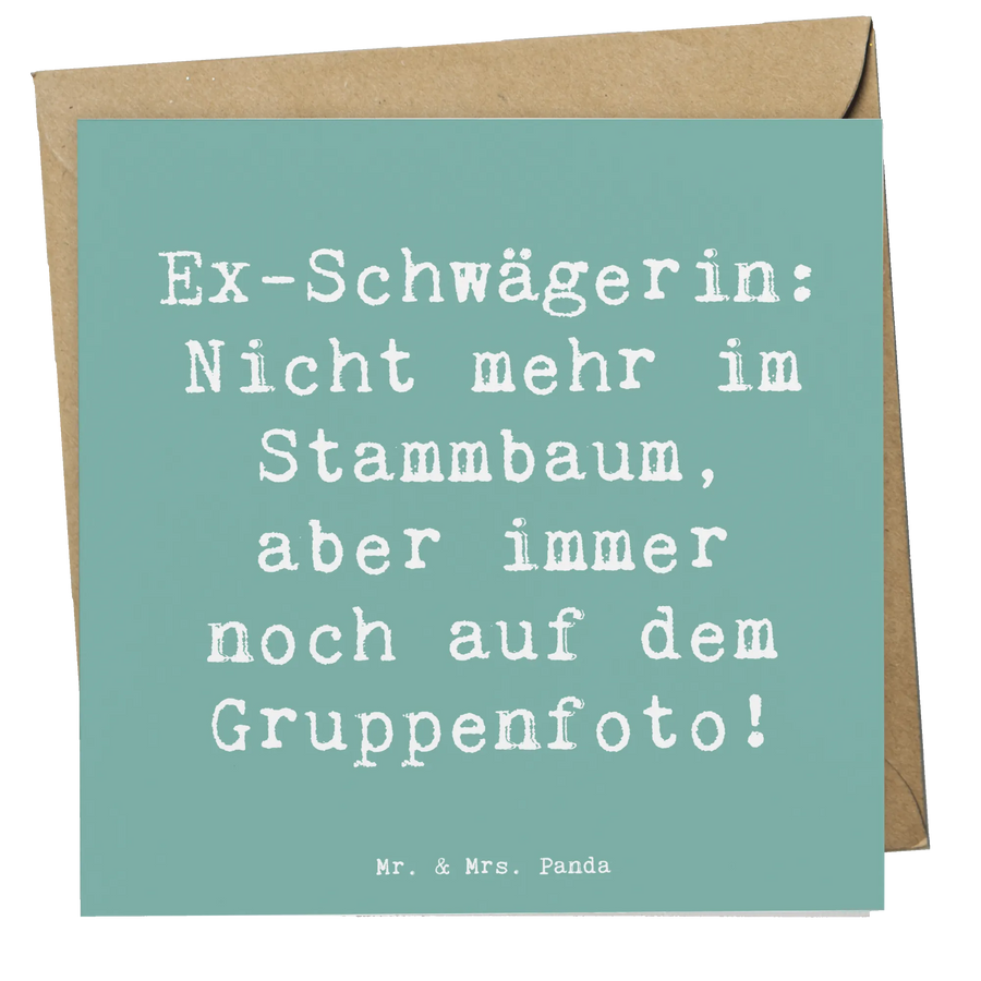Die Deluxe Karte 'Ex-Schwägerin' aus der einzigartigen Sammlung Familie & Verwandte von Mr. & Mrs. Panda ist das perfekte Geschenk, um eine besondere Person in Deinem Leben zu ehren! Ob zur Hochzeit, zum Geburtstag oder als kleine Aufmunterung – diese Karte bringt сh mit ihrer charmanten Botschaft Freude und Herz in jeden Anlass. Die Karte ist mit dem liebevollen Spruch 'Ex-Schwägerin: Nicht mehr im Stammbaum, aber immer noch auf dem Gruppenfoto!' bedruckt. Dieser Slogan trifft den Nagel auf den Kopf und reflektiert, dass die Ex-Schwiegertochter oft noch Teil der Familienlandschaft bleibt, auch wenn die ursprünglichen Bindungen aufgelöst wurden.