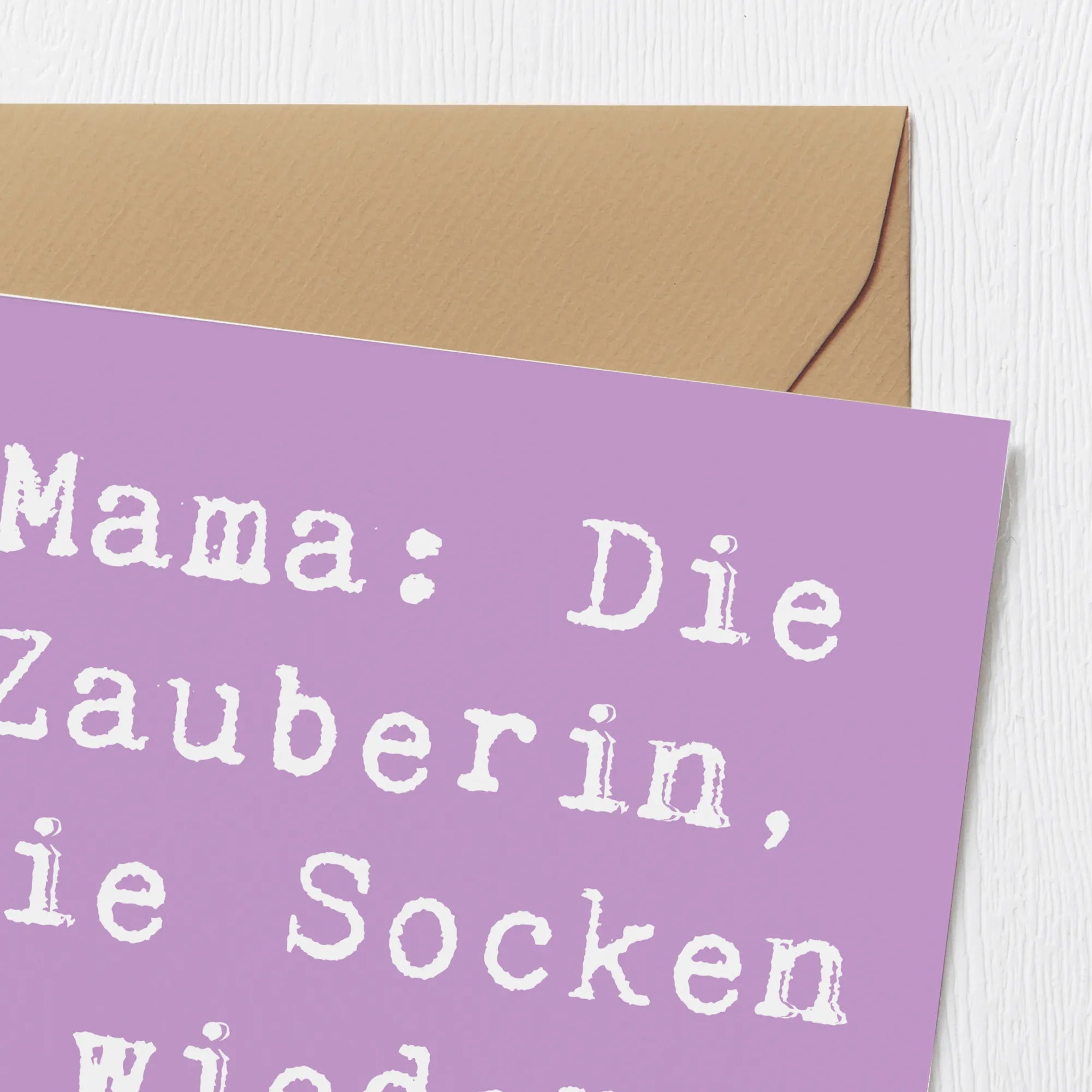 Mit ihrem zauberhaften Motiv und dem Spruch 'Mama: Die Zauberin, die Socken wieder vereint!' fängt diese Karte die Essenz der Mutterschaft perfekt ein. Das Wort 'Mama' ruft sofort warme Erinnerungen an Geborgenheit und Liebe hervor – genau das, was du deiner Mutter mit dieser Karte vermitteln möchtest!