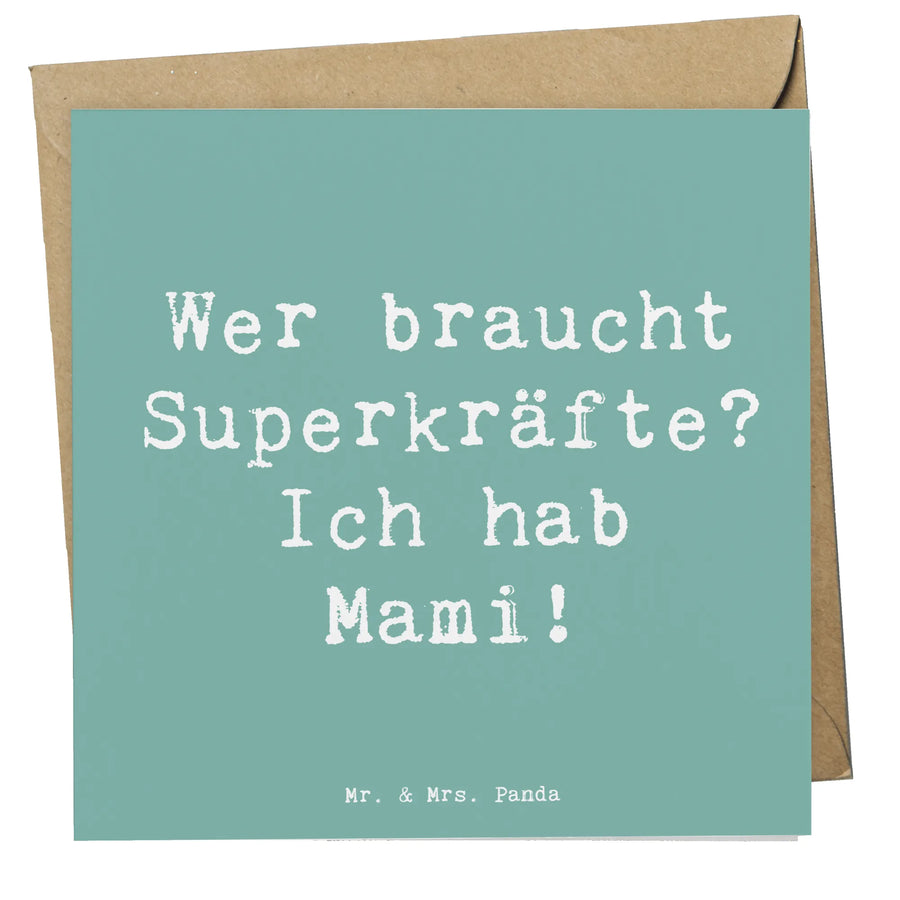 Die Vorderseite ist romantisch mit dem Spruch "Wer braucht Superkräfte? Ich hab Mami!" verziert, der die Bedeutung der Mütter auf eine charmante Art und Weise unterstreicht. Die Innenseite der Karte ist blanko gehalten, sodass Du sie ganz individuell beschriften kannst, ganz nach Deinen eigenen Worten der Wertschätzung und Dankbarkeit.