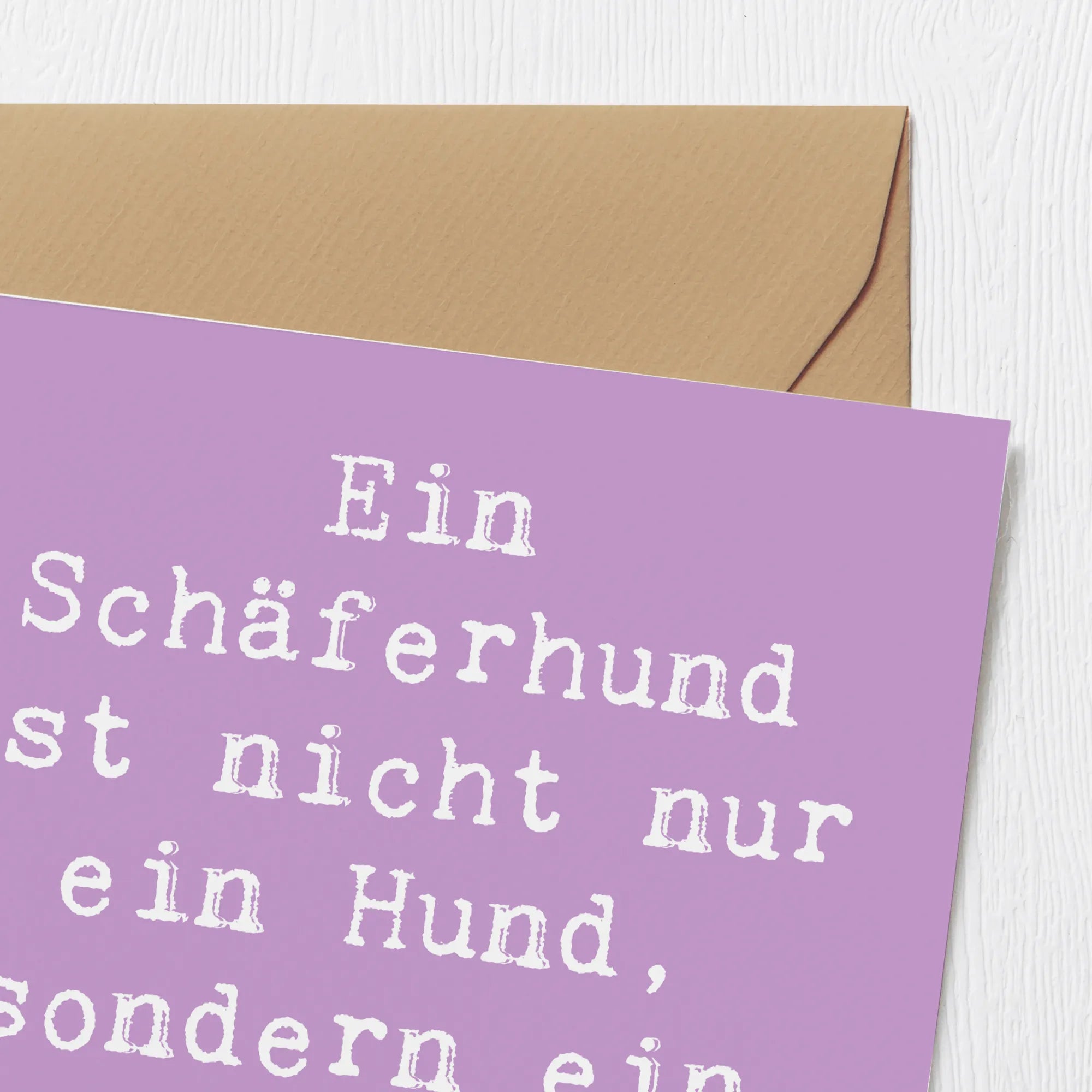 Der Schäferhund, bekannt für seine Treue und Intelligenz, wird durch den liebevollen Spruch 'Ein Schäferhund ist nicht nur ein Hund, sondern ein treuer Freund fürs Leben.' ergänzt. Diese Karte bringt die besondere Bindung zwischen Mensch und Hund wunderbar zum Ausdruck. Sie ist nicht nur ein Stück Papier, sondern ein kleines Stück Herz, da sie liebevoll auf hochwertigem 300 Gramm Karton gedruckt wurde, welcher matt glänzend wirkt und dadurch einen edlen Eindruck hinterlässt.