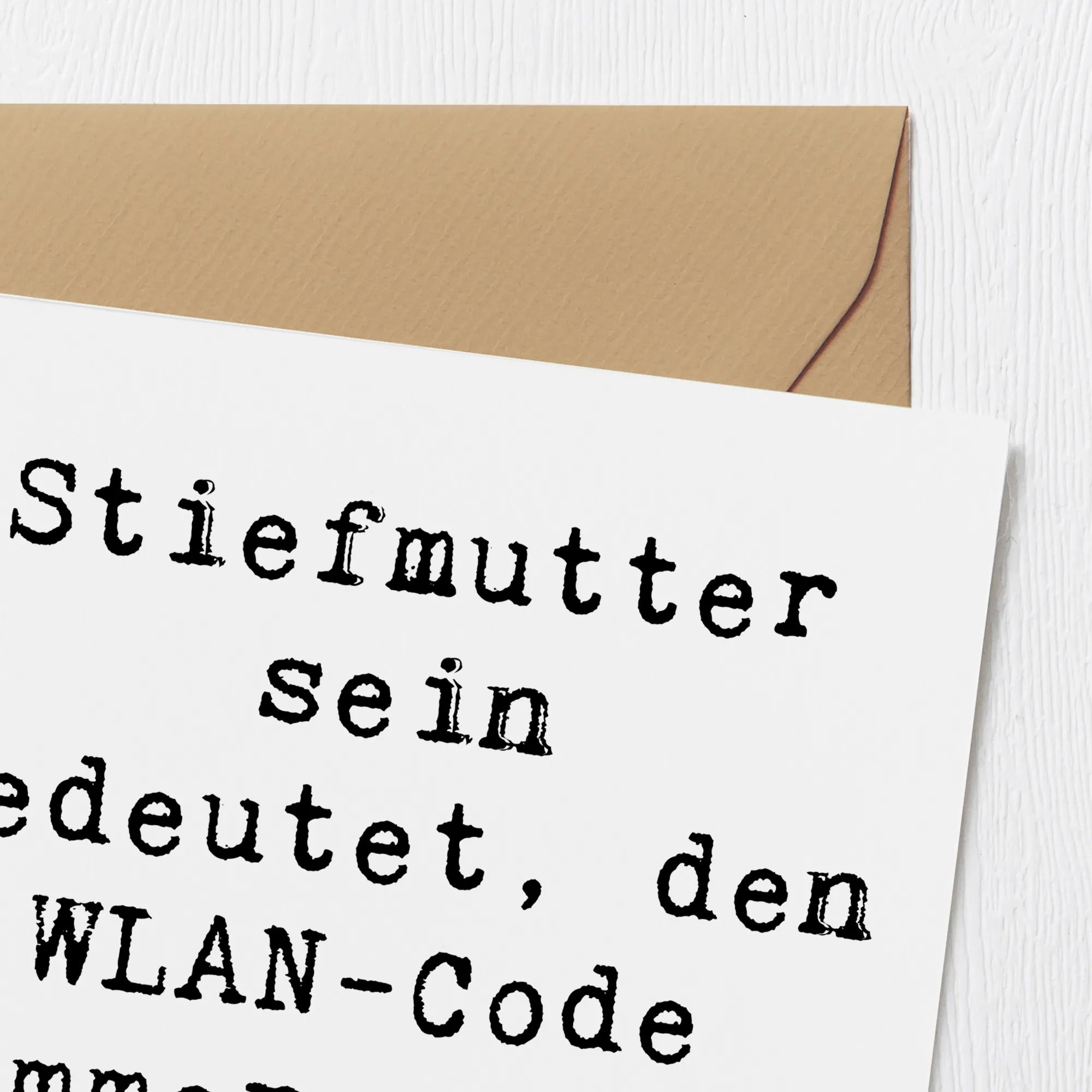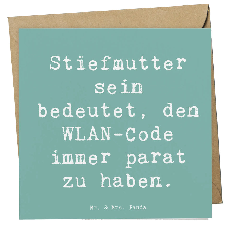 Die Stiefmutter hat eine einzigartige Rolle in der Familie, und diese Karte würdigt deren wichtige Aufgabe. Mit dem liebevollen Slogan "Stiefmutter sein bedeutet, den WLAN-Code immer parat zu haben" zaubert sie garantiert ein Lächeln auf das Gesicht jeder Stiefmutter.