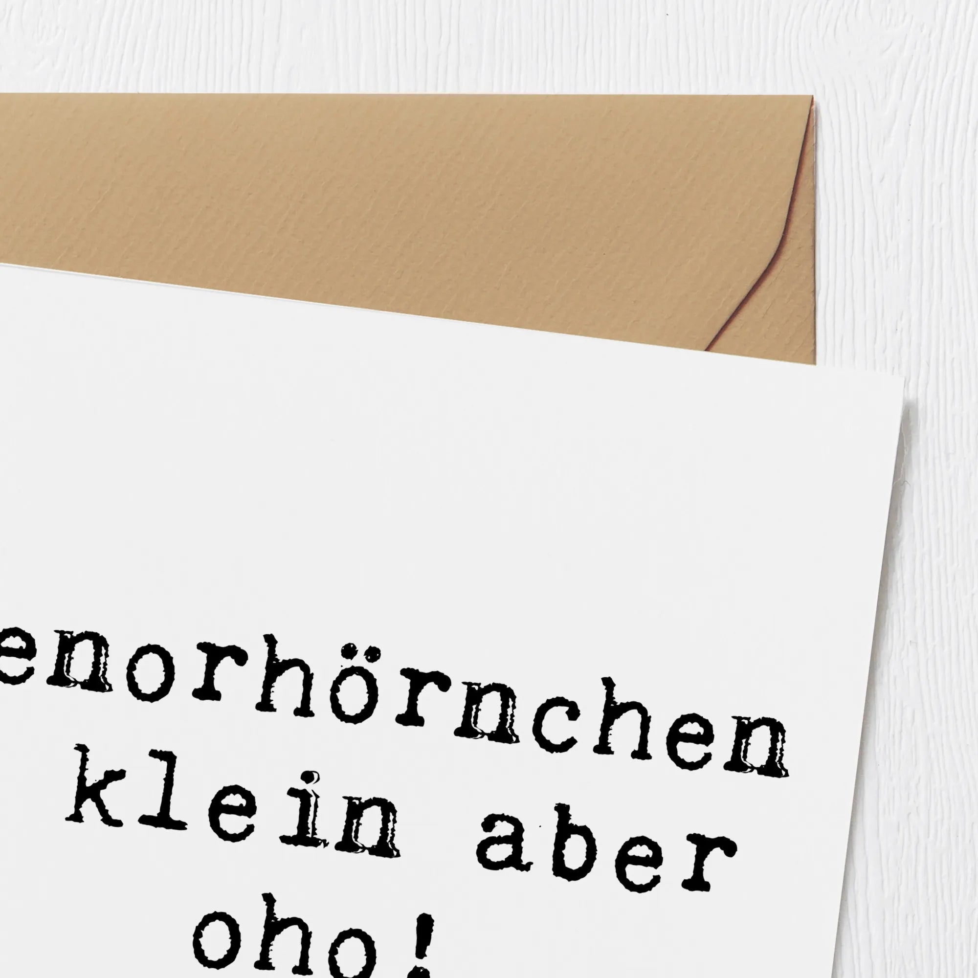 Das Tenorhorn ist ein wunderbares Instrument, das durch seinen warmen, tiefen und vollen Klang besticht. Es eignet sich sowohl für die musikalische Begleitung im Ensemble als auch für Soloauftritte. Die Karte zeigt den Spruch 'Tenorhörnchen - klein aber oho!', der die Vielseitigkeit und die besondere Bedeutung des Instruments charmant zusammenfasst. Sie ist ideal, um Glückwünsche zu überbringen oder einfach mal "Danke" zu sagen.
