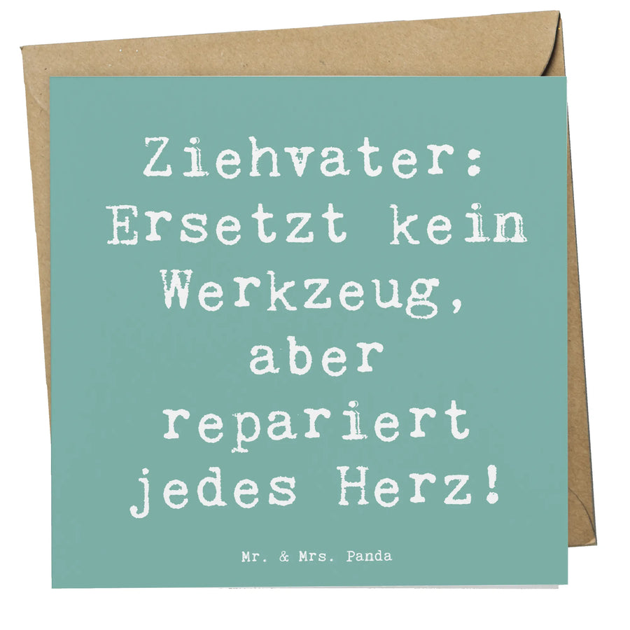 Die Deluxe Karte "Ziehvater" von Mr. & Mrs. Panda ist das perfekte Geschenk für all die besonderen Anlässe, an denen wir unseren Ziehvater ehren und danken möchten. Geschaffen aus hochwertigem 300 Gramm Karton, begeistert diese Grußkarte mit einem schlichten, aber doch ausdrucksstarken Design. Auf der Vorderseite prangt der herzliche Spruch: "Ziehvater: Ersetzt kein Werkzeug, aber repariert jedes Herz!". Dieser Spruch fasst die Bedeutung zusammen, die Ziehväter in unserem Leben haben. Sie sind nicht nur eine Unterstützung, sondern auch eine Quelle der Liebe und Fürsorge, die oft in unser Leben tritt und dort eine wichtige Rolle einnimmt.