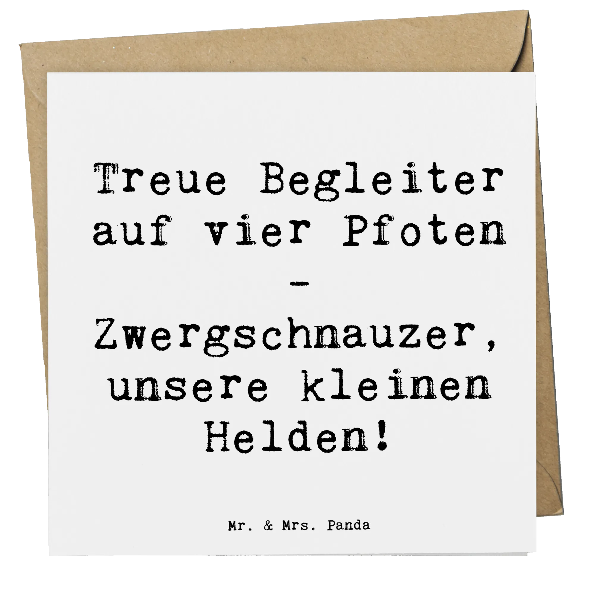 Diese Karte ist nicht nur wunderschön, sondern auch besonders liebevoll gestaltet. Sie misst 140 mm x 140 mm und besteht aus hochwertigem 300 Gramm Karton, der mit einer edlen, hochglänzenden Veredelung versehen ist. Die Vorderseite der Karte zeigt das bezaubernde Motiv eines Zwergschnauzers, perfekt kombiniert mit dem Spruch "Treue Begleiter auf vier Pfoten - Zwergschnauzer, unsere kleinen Helden!". Dieser Spruch bringt das Herz aller Hundefreunde zum Schmelzen und macht die Karte zu etwas ganz Besonderem.