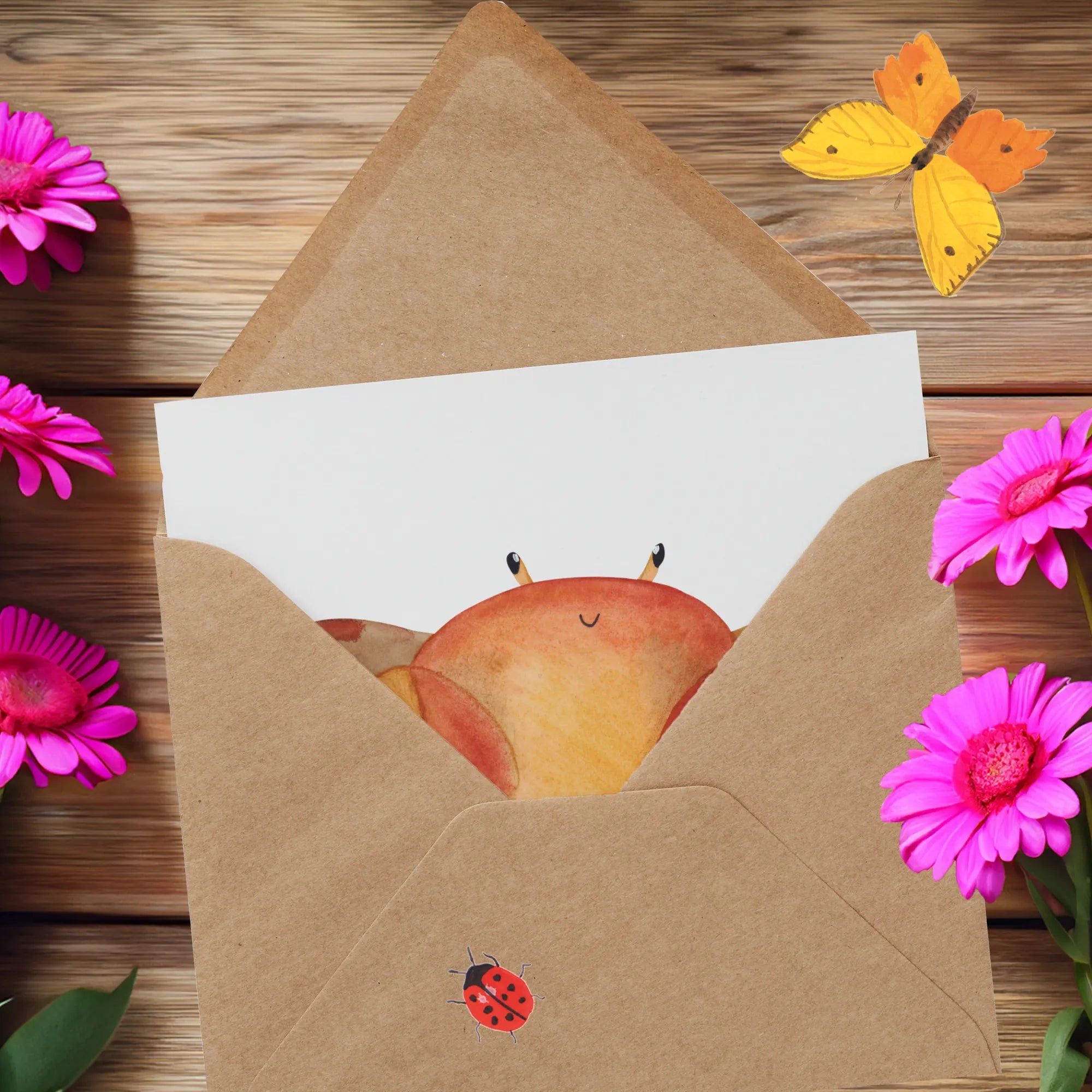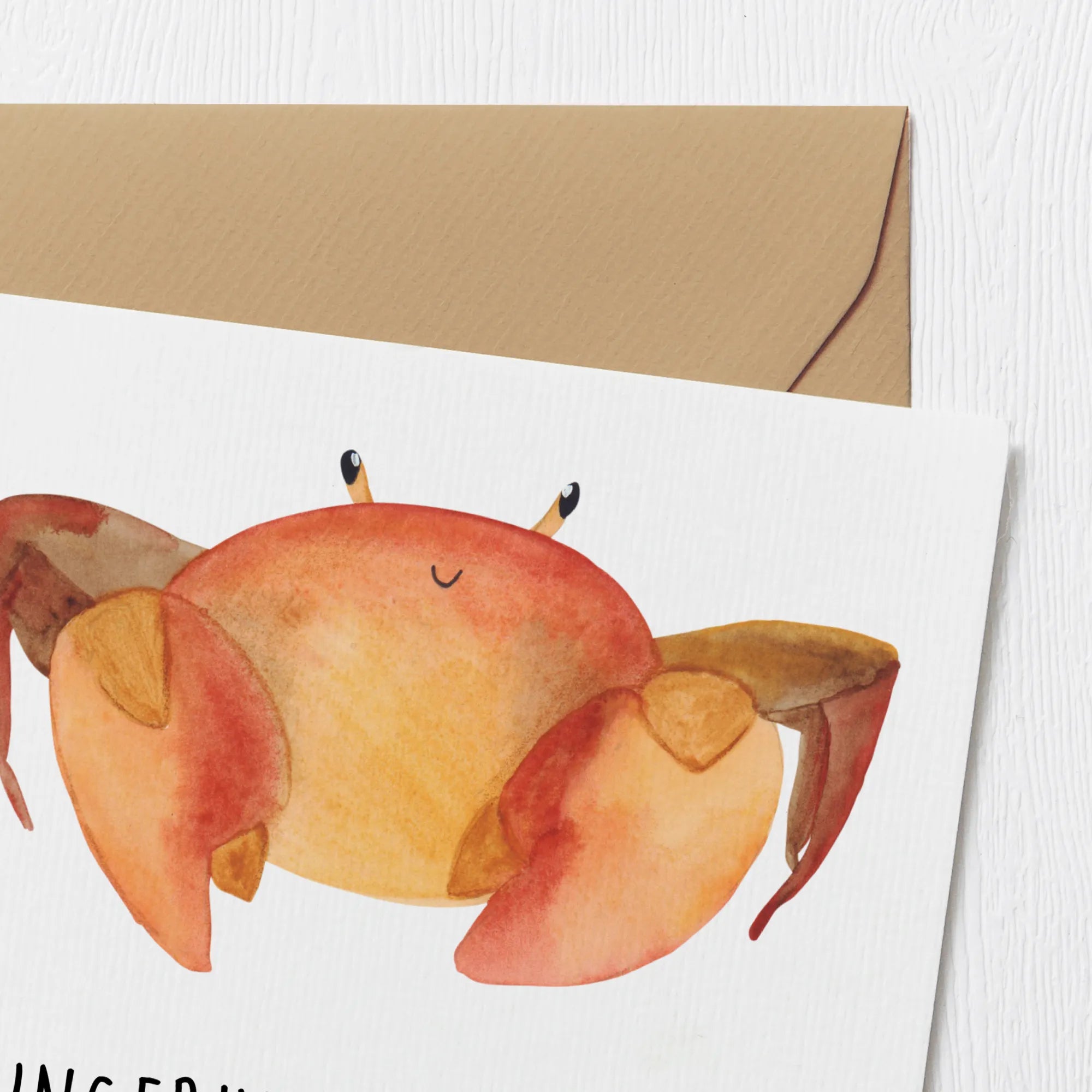 Unsere quadratische Deluxe Karte aus der Sternzeichen-Kollektion von Mr. & Mrs. Panda ist das perfekte Krebs Geschenk für alle, die im Juni oder Juli geboren sind oder das Meer und seine kleinen Bewohner lieben. Die Karte trägt den herzlichen Spruch „Hingebungsvoll und empathisch wie ein Krebs.“ und zeigt unseren handgezeichneten, süßen kleinen Krebs – freundlich, farbenfroh und ein bisschen frech. 🦀