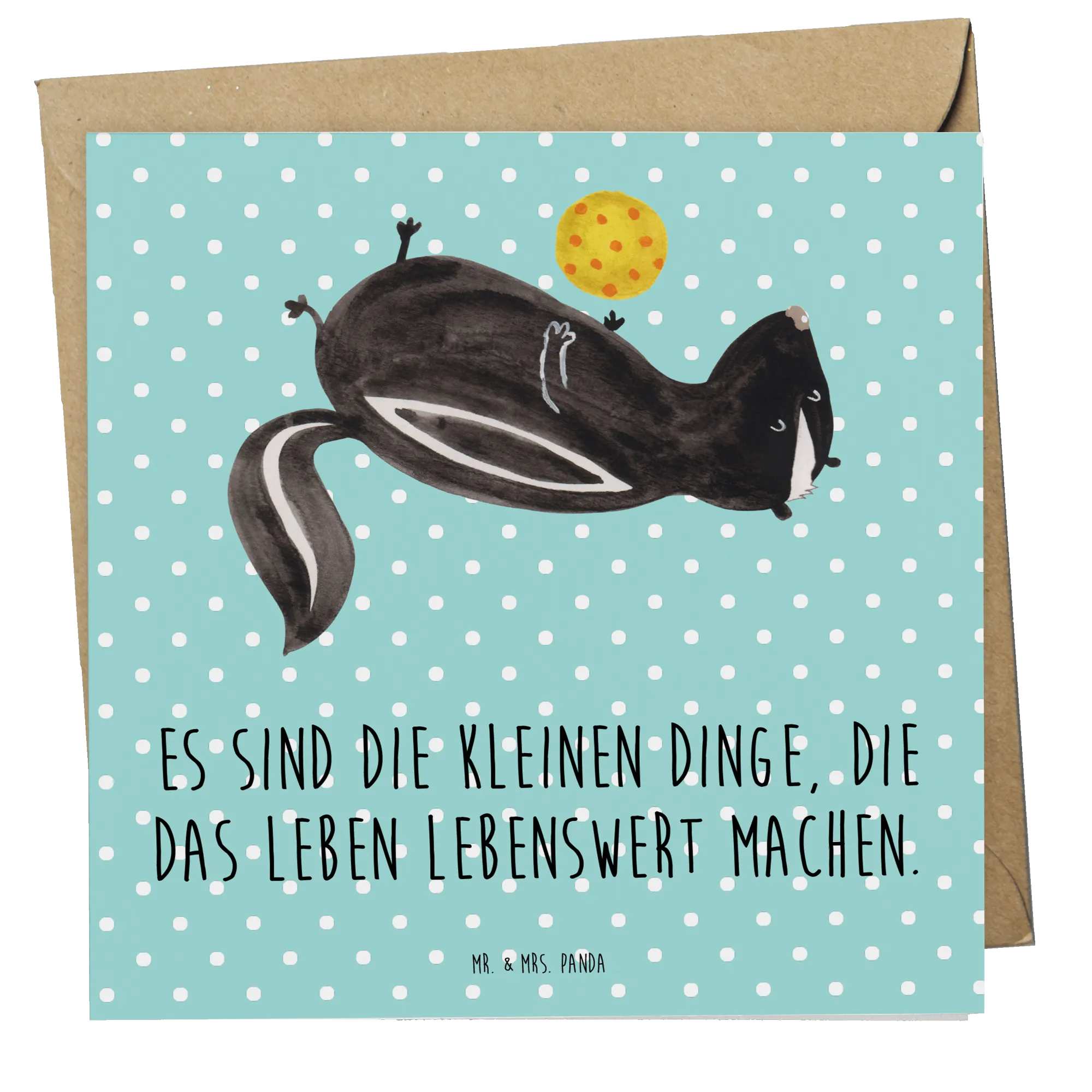 Mit einem edlen Umschlag inklusive, ist die Deluxe Karte perfekt für individuelle Grüße oder Glückwünsche und macht jeden feierlichen Anlass besonders. Deine Lieben werden die herzhafte Gestaltung und die Botschaft zu schätzen wissen, denn kleine Aufmerksamkeiten können Großes bewirken. Greif zu und lass das Stinktier von Mr. & Mrs. Panda Deinen Tag erhellen! 🎉