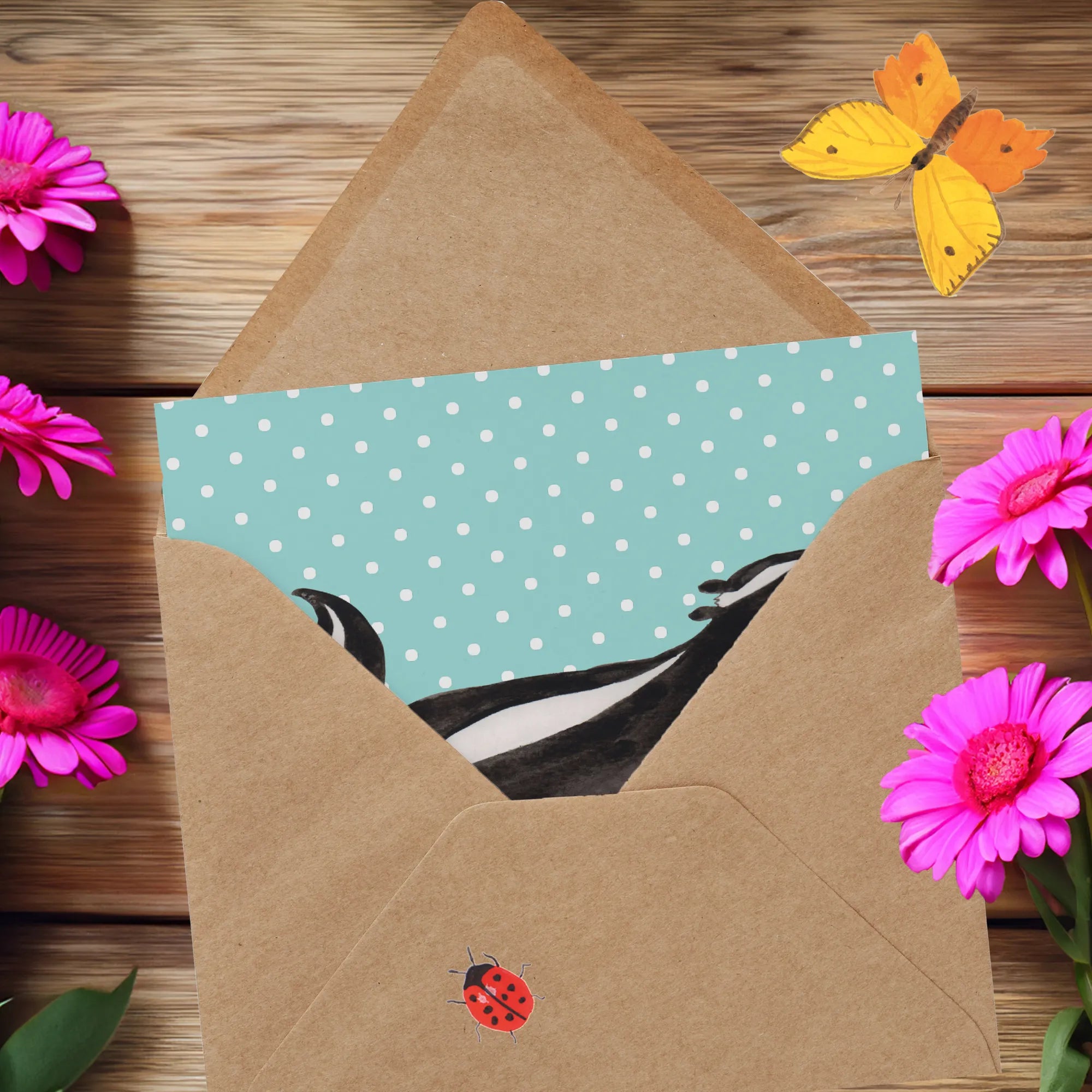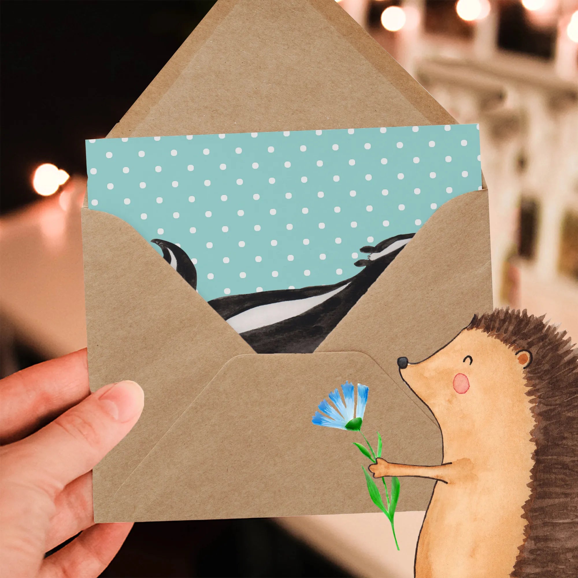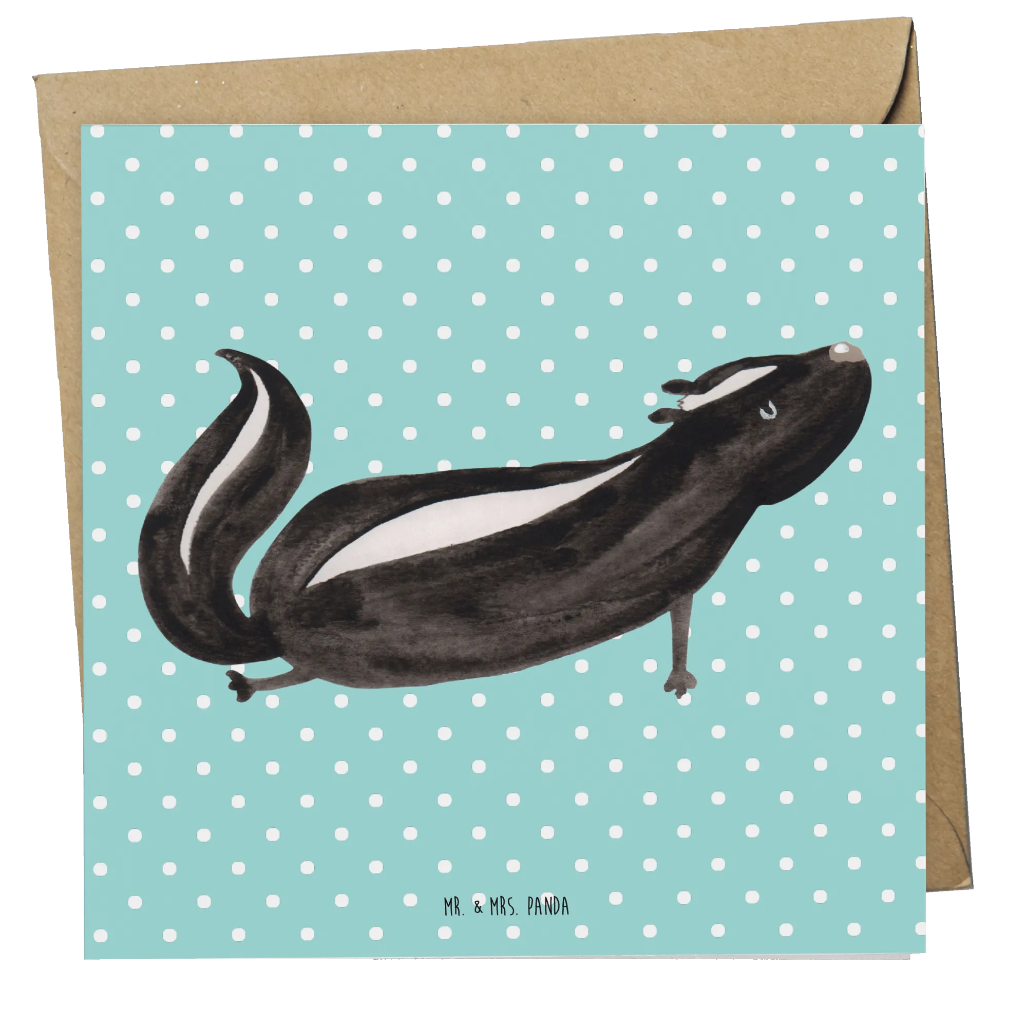 Die matte Innenseite bietet ausreichend Platz für persönliche Botschaften und Glückwünsche, während der edel glänzende Druck der Vorderseite das Motiv hervorragend zur Geltung bringt. Die Stinktier-Kollektion ist eine Hommage an Herrn Blume, das treue Haustier von Mrs. Panda. Jedes Motiv in dieser Reihe wurde mit viel Liebe und Sorgfalt kreiert.