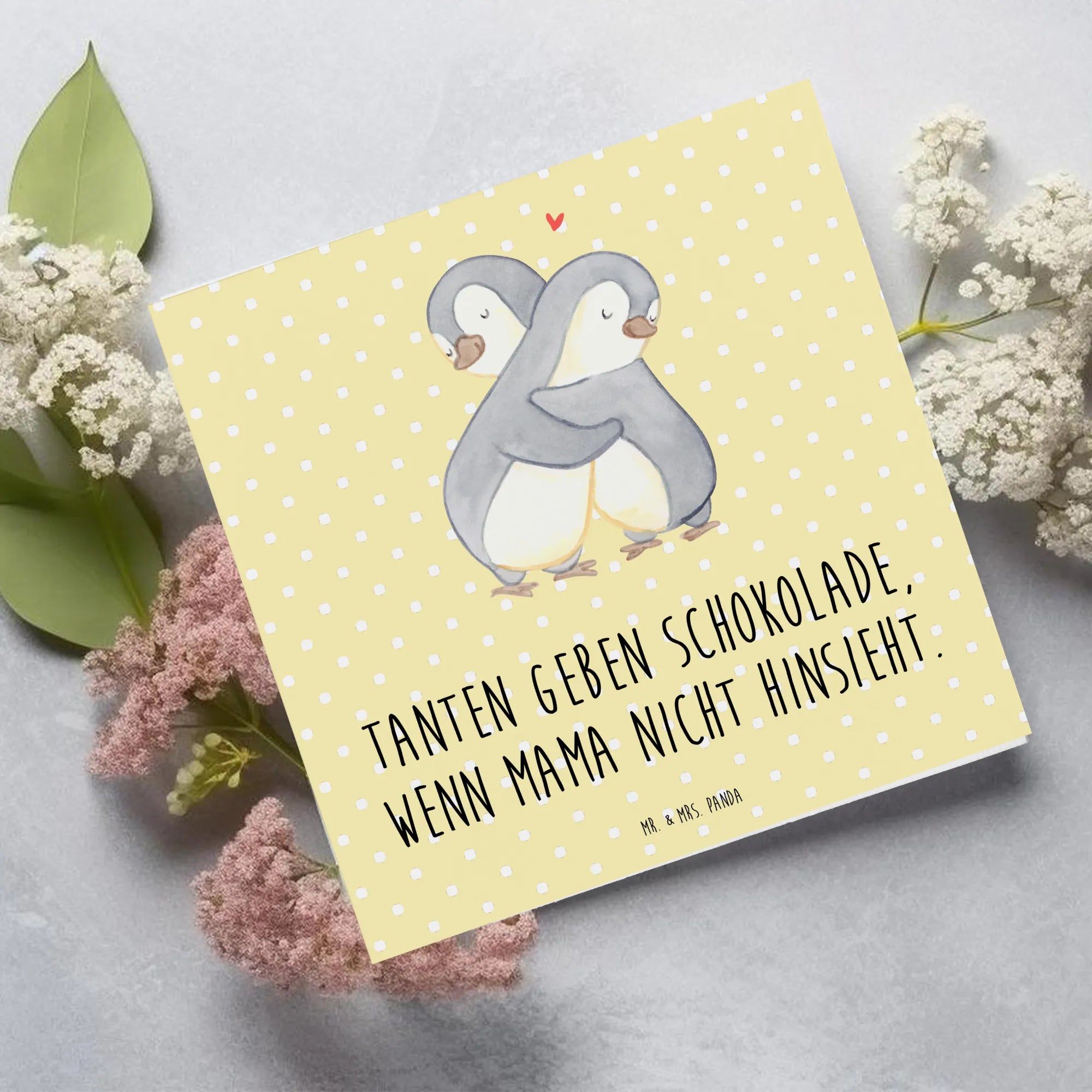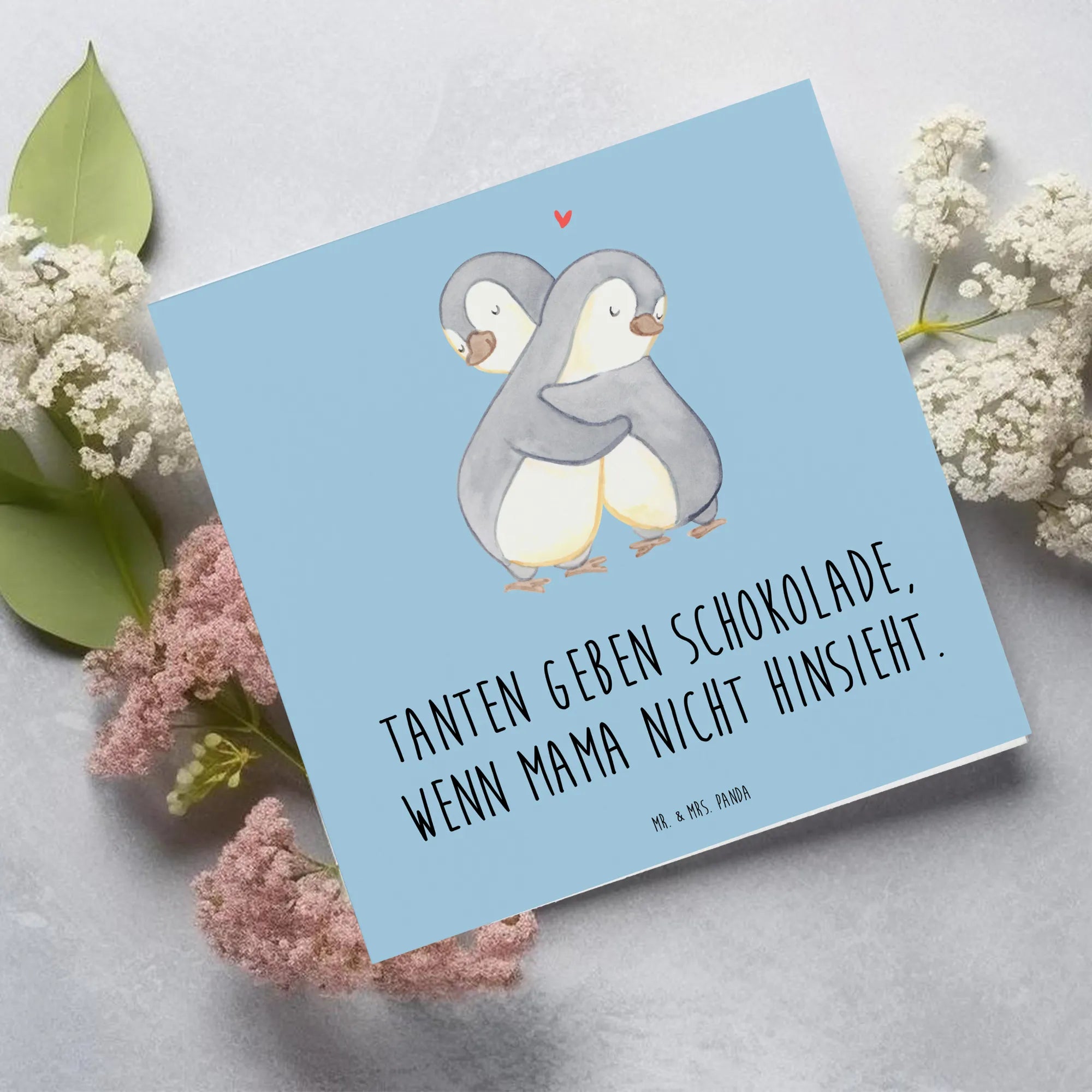 Der liebevolle Spruch "Tanten geben Schokolade, wenn Mama nicht hinsieht." begleitet das wunderschöne Motiv und bringt die besondere Beziehung zwischen Tanten und ihren Nichten oder Neffen zum Ausdruck. Tanten sind oft wie zweite Mütter, die mit ihrem Charme, ihrer Lebensfreude und ihrem Verständnis für die kleinen Freuden des Lebens glänzen. Diese Karte feiert genau diese spezielle Rolle in der Familie und ist perfekt geeignet, um die Verbundenheit zu zeigen.