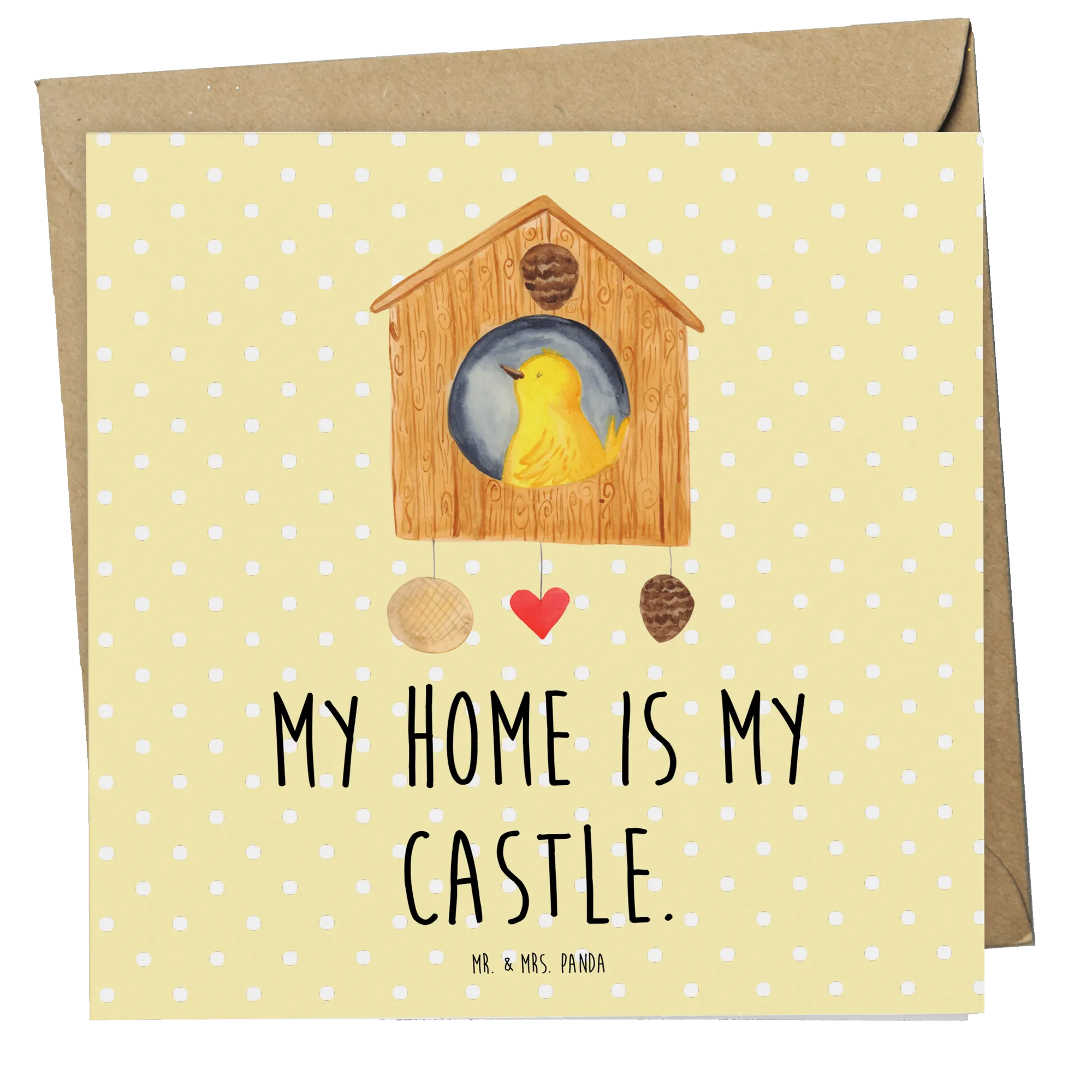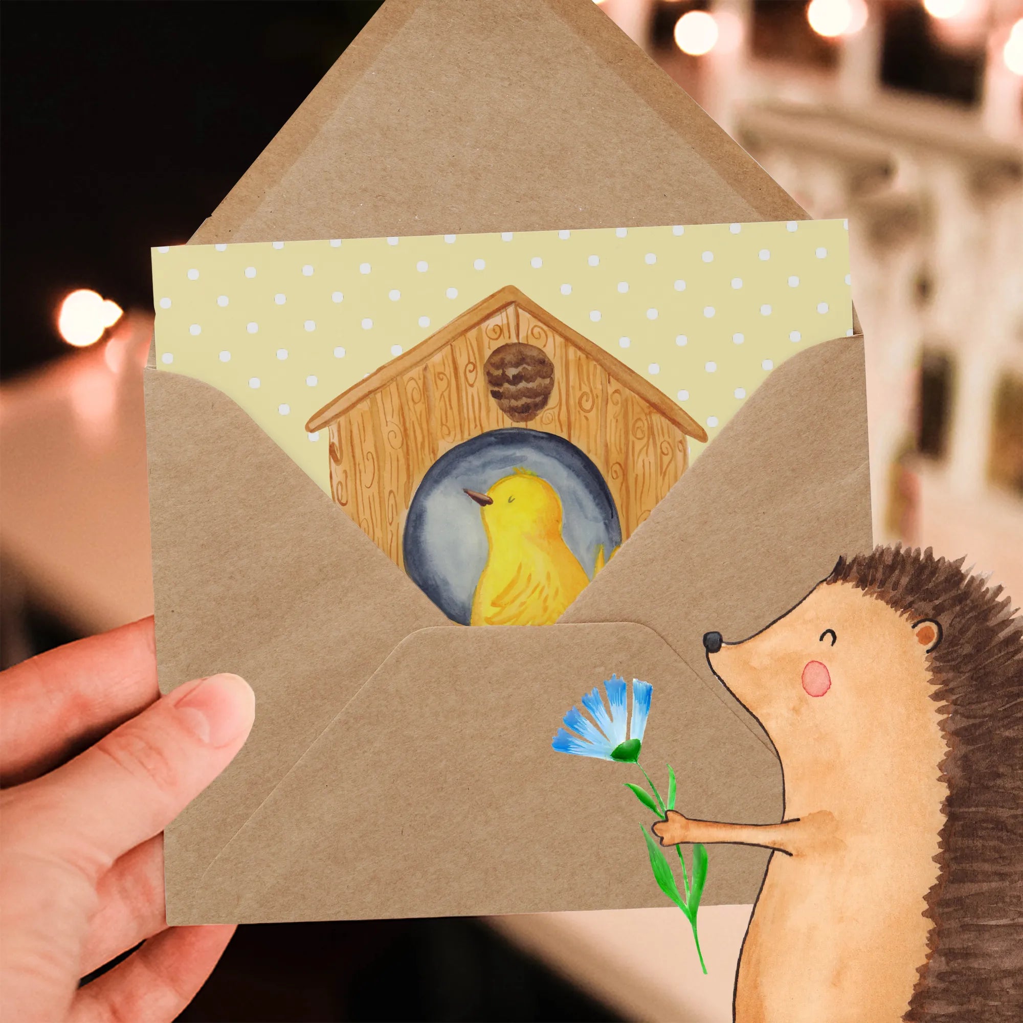 Deluxe Karte Vogel Haus - mit Spruch - Gelb Pastell