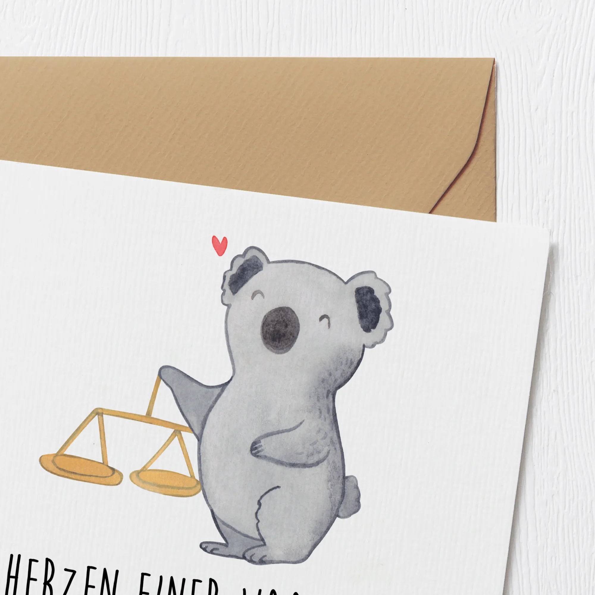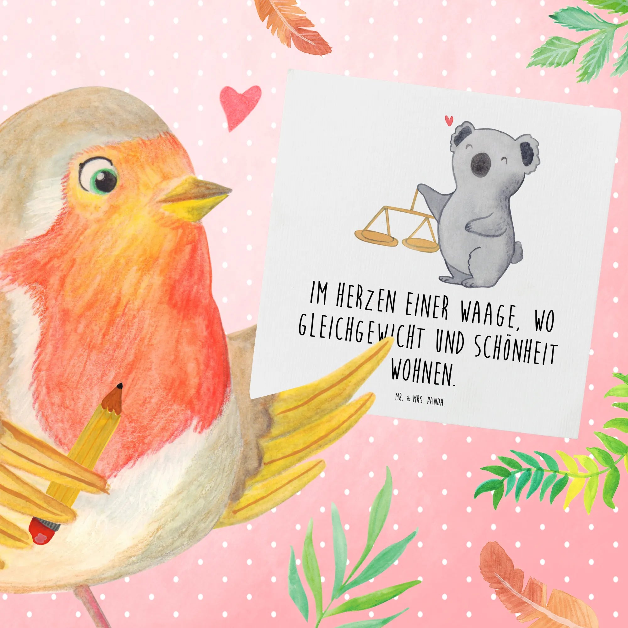 Die Waage ist in liebevollen Aquarelltönen gestaltet und spiegelt mit dem Spruch: "Im Herzen einer Waage, wo Gleichgewicht und Schönheit wohnen." die Eigenschaften des Sternzeichens wider. Das zarte Design zeigt einen koalaartigen Freund, der neben einer klassischen Balkenwaage posiert und eine Atmosphäre von Harmonie und Zuneigung ausstrahlt. So wird jede Botschaft zum besonderen Erlebnis!