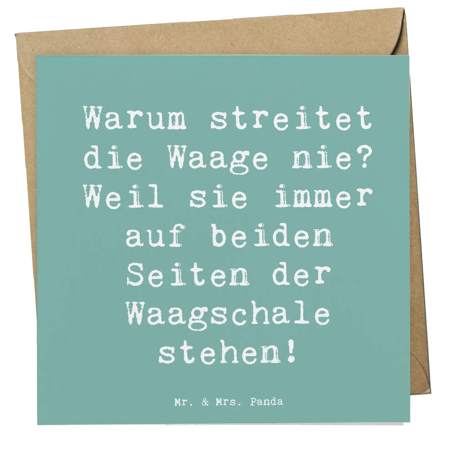 Mit einem charmanten Spruch "Warum streitet die Waage nie? Weil sie immer auf beiden Seiten der Waagschale stehen!" bringt diese Karte eine humorvolle Note in feierliche Anlässe. Egal ob Geburtstag, Hochzeit, Jubiläum oder einfach als liebevolle Geste, diese Karte ist ideal für individuelle Grüße und Glückwünsche.