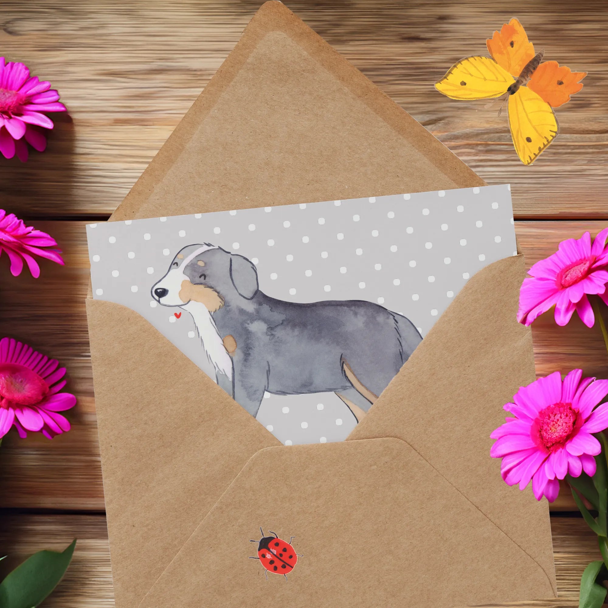 Besondere Merkmale: hochglänzende Veredelung vorne und hinten, matte Innenseite zur Beschriftung, edler Umschlag inklusive. Diese Karte ist ein kleines, aber feines Geschenk voller Emotion und Stil – weil jeder Moment mit einem Berner kostbar ist. 🐾💌