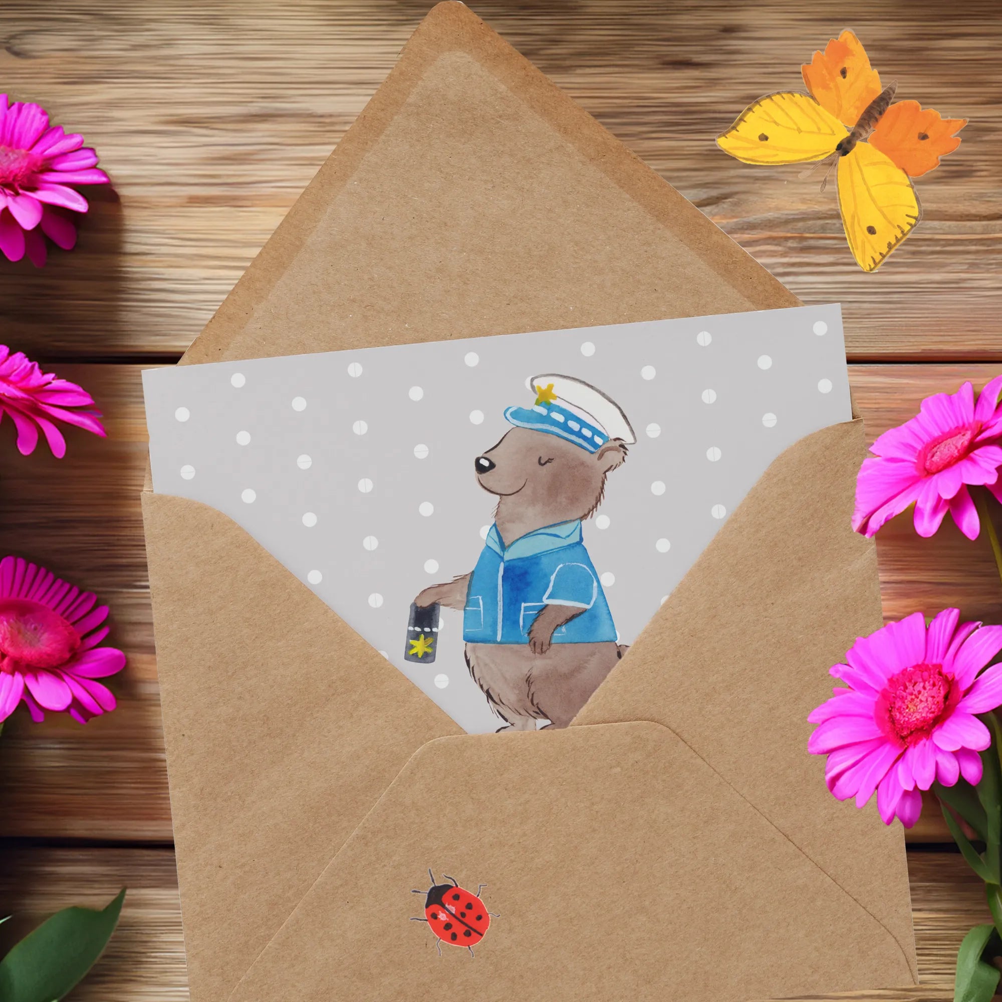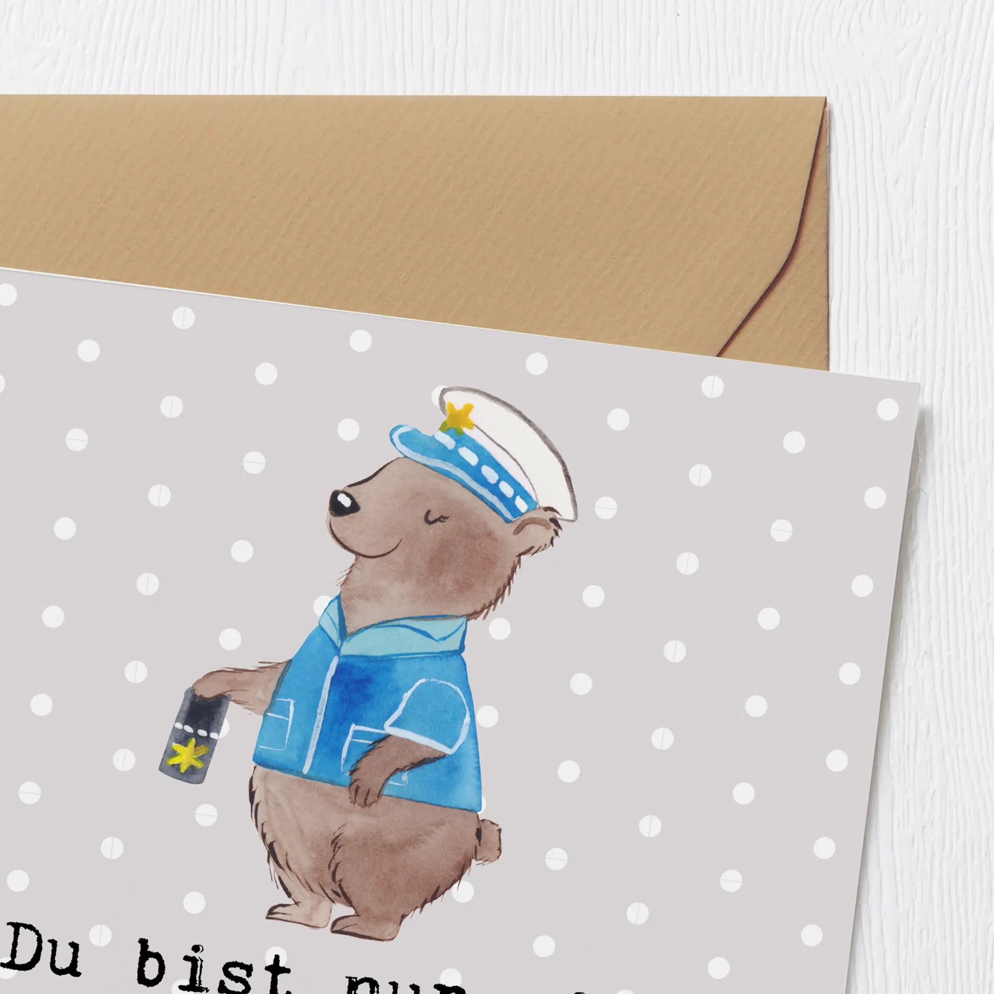 Diese wunderschöne und besonders hochwertige quadratische Karte ist der ideale Begleiter für alle feierlichen Anlässe im Leben einer Polizistin. Ob zum erfolgreichen Abschluss des Studiums an der Polizeiakademie, zur bestandenen Ausbildung, zur wohlverdienten Beförderung oder als rührender Abschied in die Rente - dieses Motiv trifft mitten ins Schwarze. 🐻