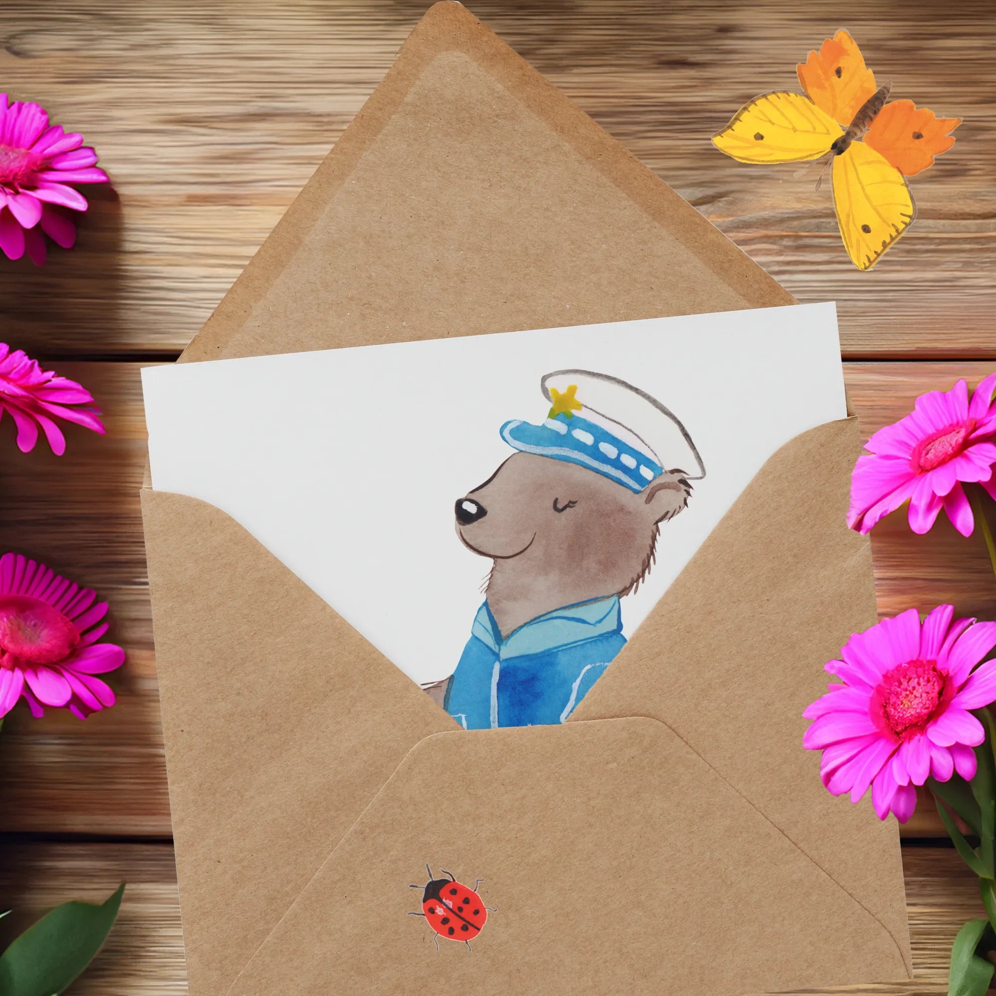 Verschenk dieses Motiv an Freundinnen oder an jene, die in der Polizeiarbeit stehen. Es ist eine liebevolle Anerkennung ihrer Arbeit, ein kleines Danke für Beobachtungsgabe, Einsatzfreude und Menschlichkeit. Eine Polizistin, ein Bär, ein Herz – mehr braucht es oft nicht, um Mut zu schenken.