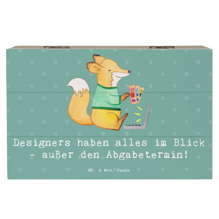 Die wunderschöne Holzkiste von Mr. & Mrs. Panda ist das perfekte Geschenk für all jene, die die kreative Welt der Designer schätzen. Mit ihrer liebevollen Gestaltung und dem eingearbeiteten Spruch 'Designers haben alles im Blick - außer den Abgabetermin!' ist diese Kiste nicht nur ein funktionales Accessoire, sondern auch eine lustige Hommage an die Herausforderungen eines Designers.
