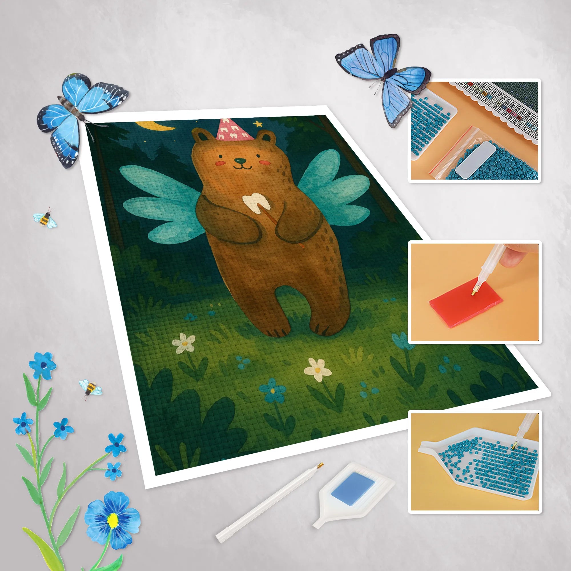 Diamond Painting Bär Zahnfee Design - Ohne Rahmen